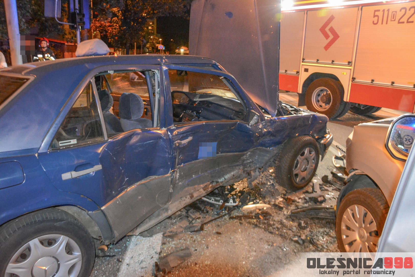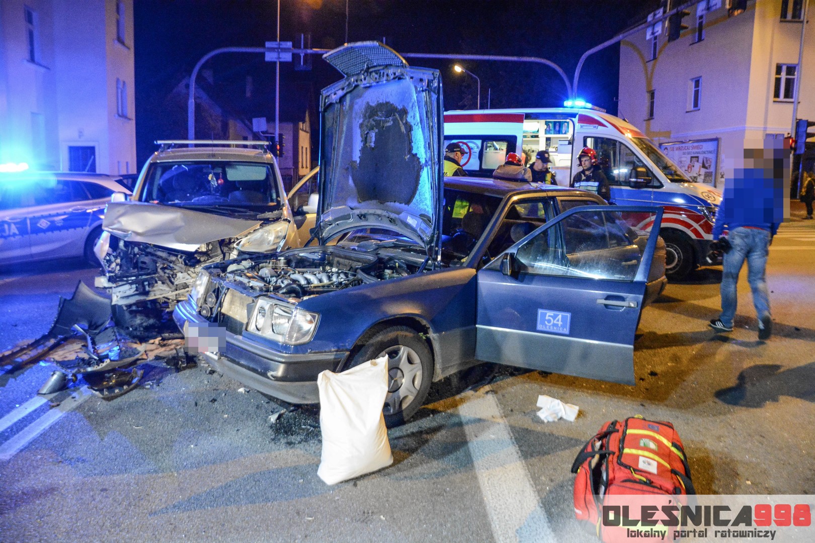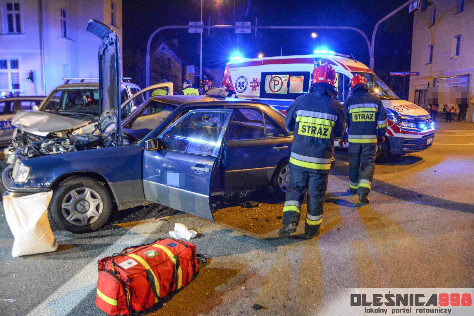 Dzisiejszego wieczoru, około godziny 22:00, Dyżurny Operacyjny Stanowiska Kierowania Komendanta Powiatowego PSP w Oleśnicy odebrał zgłoszenie o wypadku drogowym z udziałem dwóch samochodów osobowych na skrzyżowaniu ulic M. Curie – Skłodowskiej, 11 Listopada i Lwowskiej. Wstępne informacje mówiły o obecności osób poszkodowanych. Na miejsce niezwłocznie zostały zadysponowane dwa zastępy oleśnickiej Jednostki Ratowniczo – Gaśniczej. Do zdarzenia udał się także podstawowy zespół Ratownictwa Medycznego oraz patrol Policji.