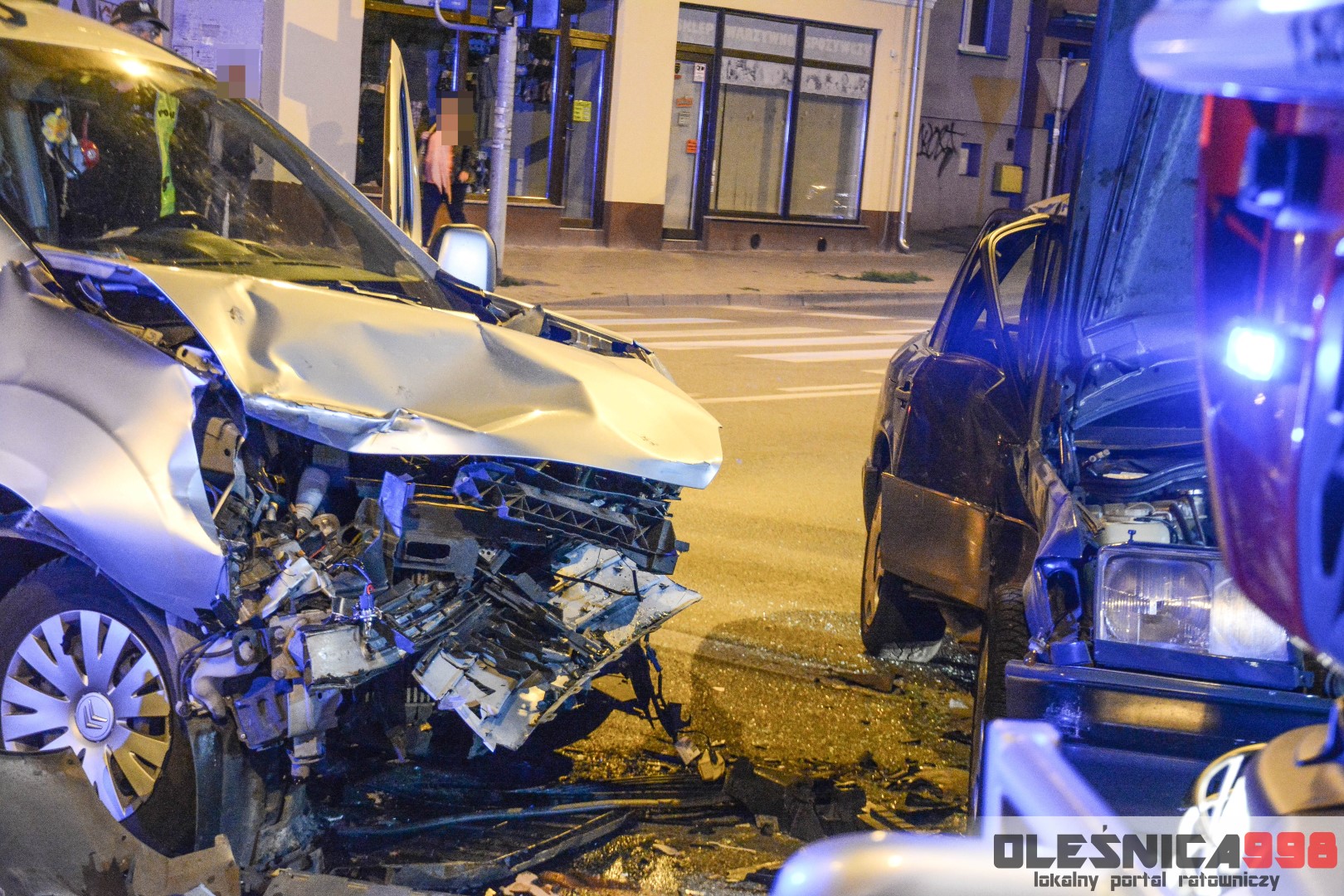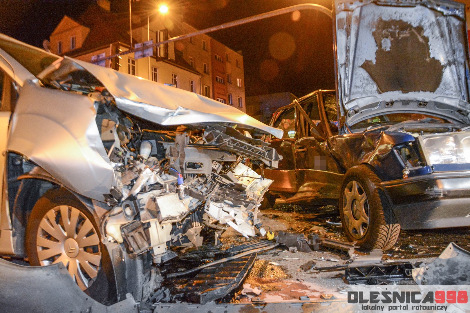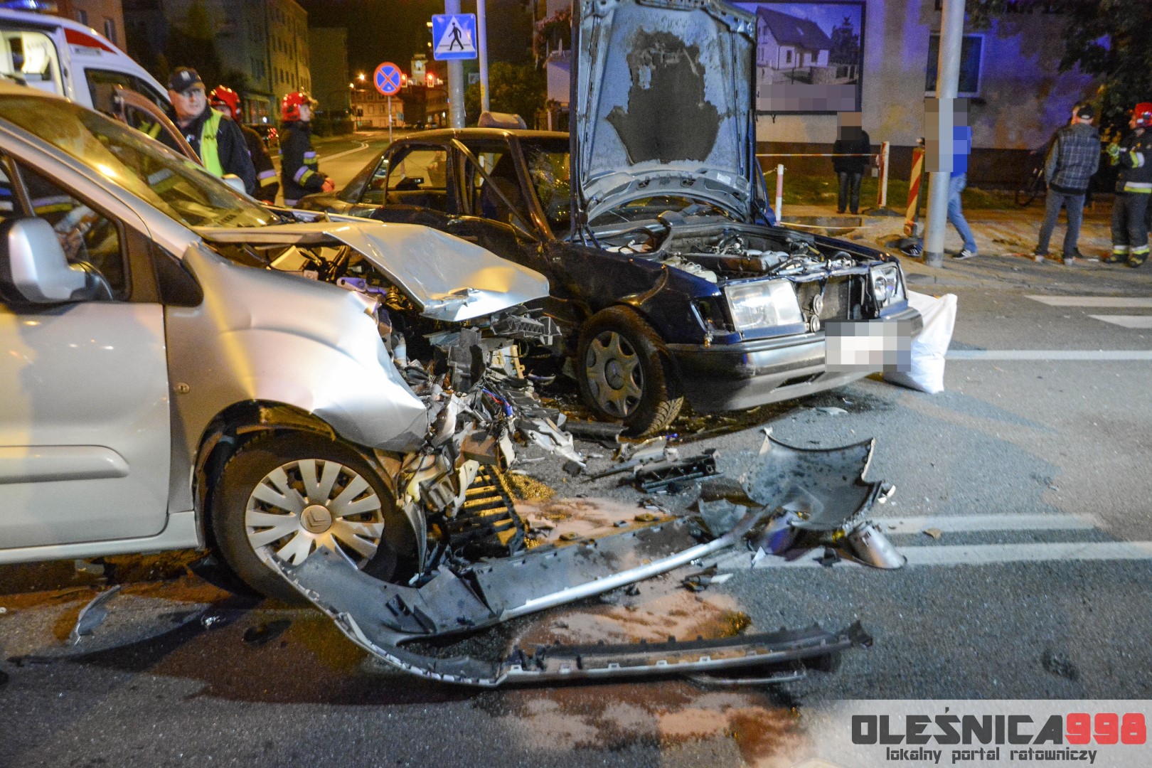 Dzisiejszego wieczoru, około godziny 22:00, Dyżurny Operacyjny Stanowiska Kierowania Komendanta Powiatowego PSP w Oleśnicy odebrał zgłoszenie o wypadku drogowym z udziałem dwóch samochodów osobowych na skrzyżowaniu ulic M. Curie – Skłodowskiej, 11 Listopada i Lwowskiej. Wstępne informacje mówiły o obecności osób poszkodowanych. Na miejsce niezwłocznie zostały zadysponowane dwa zastępy oleśnickiej Jednostki Ratowniczo – Gaśniczej. Do zdarzenia udał się także podstawowy zespół Ratownictwa Medycznego oraz patrol Policji.