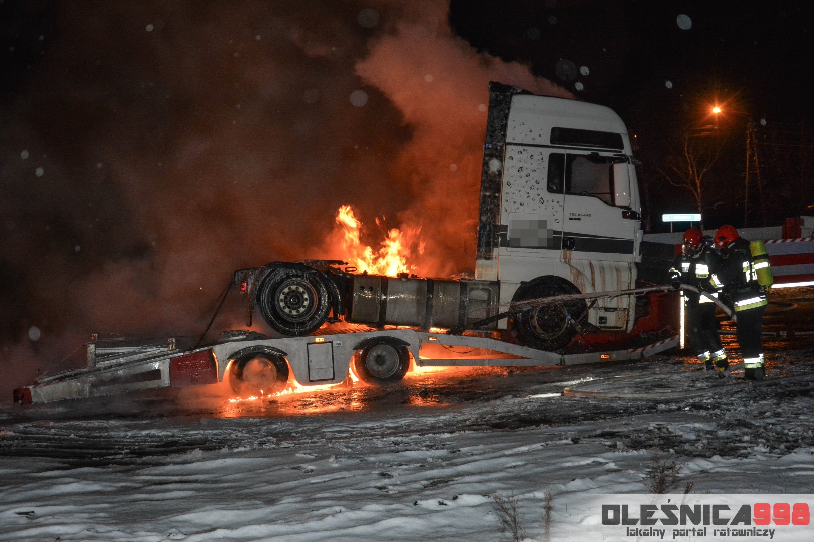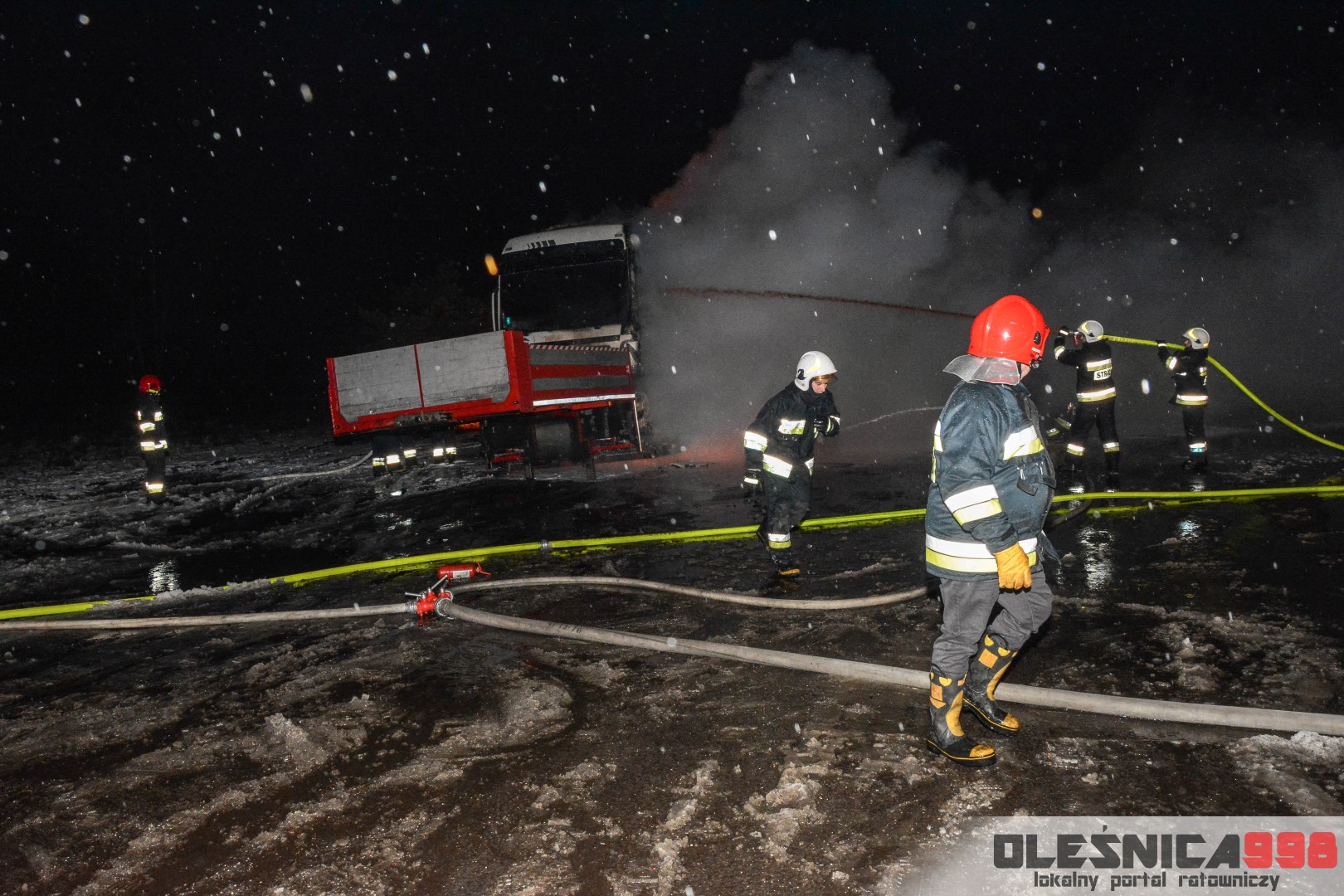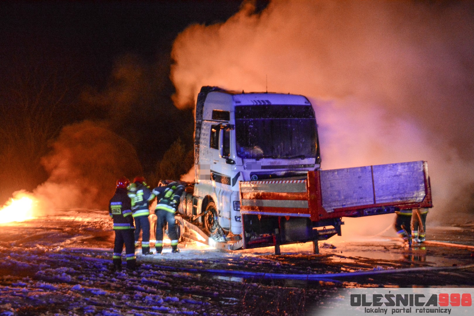 Dzisiejszego popołudnia, około godziny 16:30, do oleśnickiego Stanowiska Kierowania Komendanta Powiatowego PSP, wpłynęła informacja o pożarze samochodu ciężarowego na 356 kilometrze drogi krajowej nr 25. Do zdarzenia zadysponowane zostały kolejno 2 zastępy z JRG Oleśnica, zastęp z OSP Sokołowice a także zastęp z OSP KSRG Ligota Polska. O fakcie poinformowano również dyżurnego Policji, który na miejsce wysłał patrol Wydziału Ruchu Drogowego.