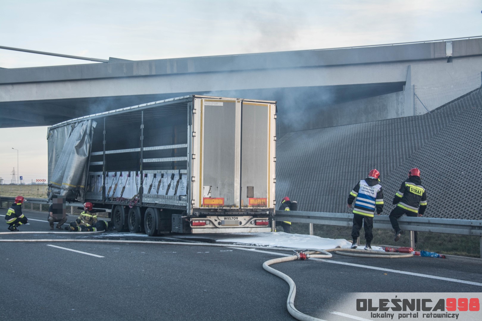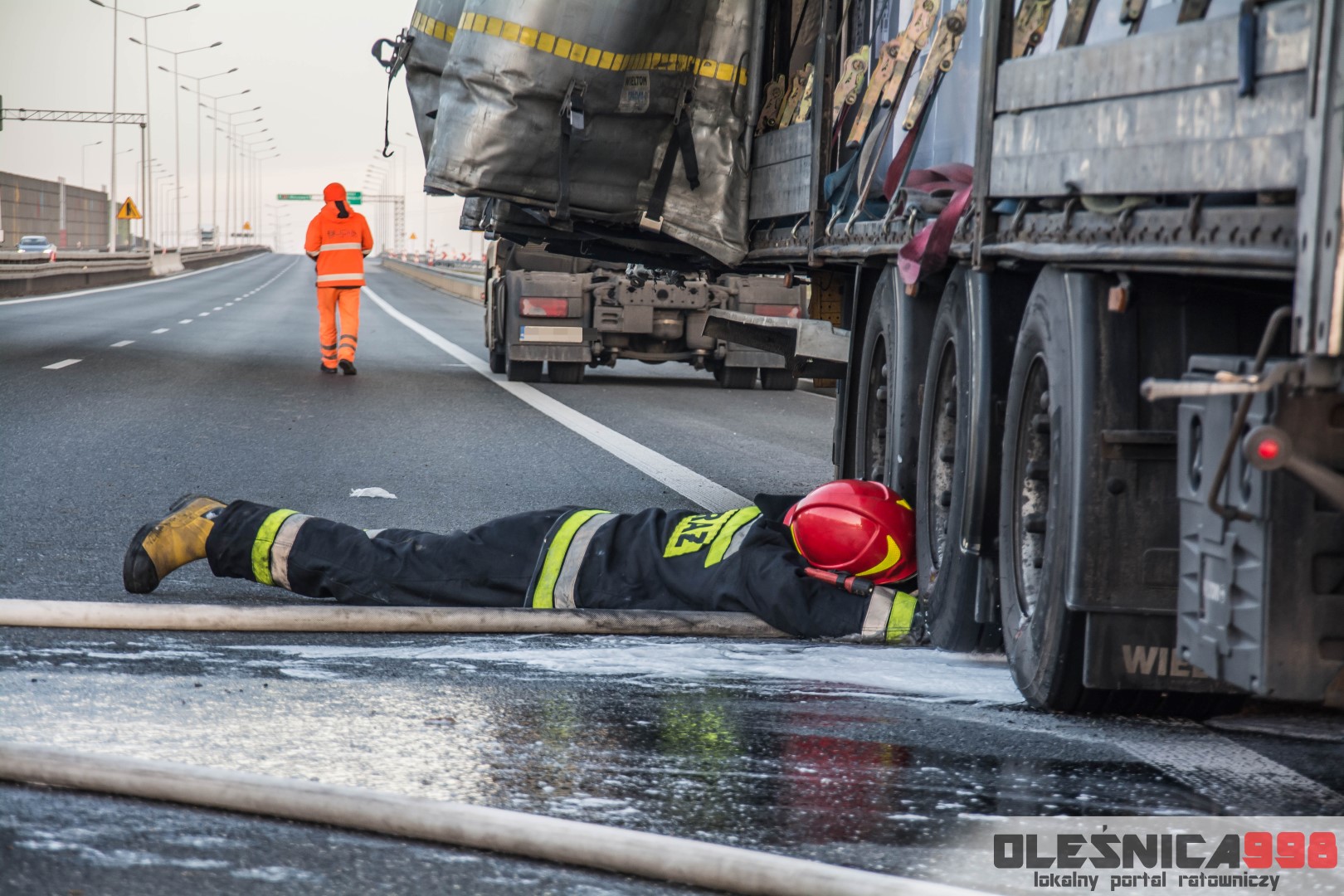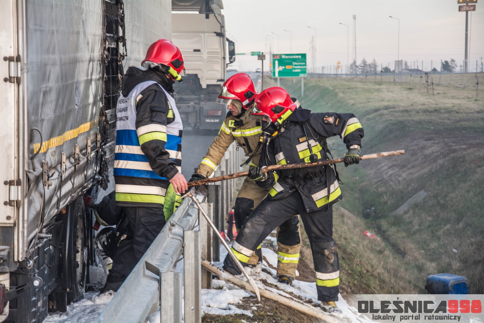 Pożar ciężarówki na węźle Oleśnica Zachód