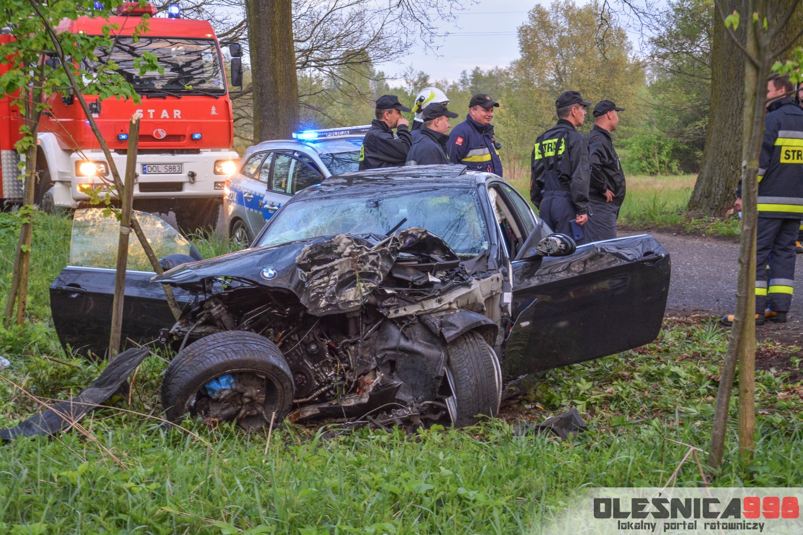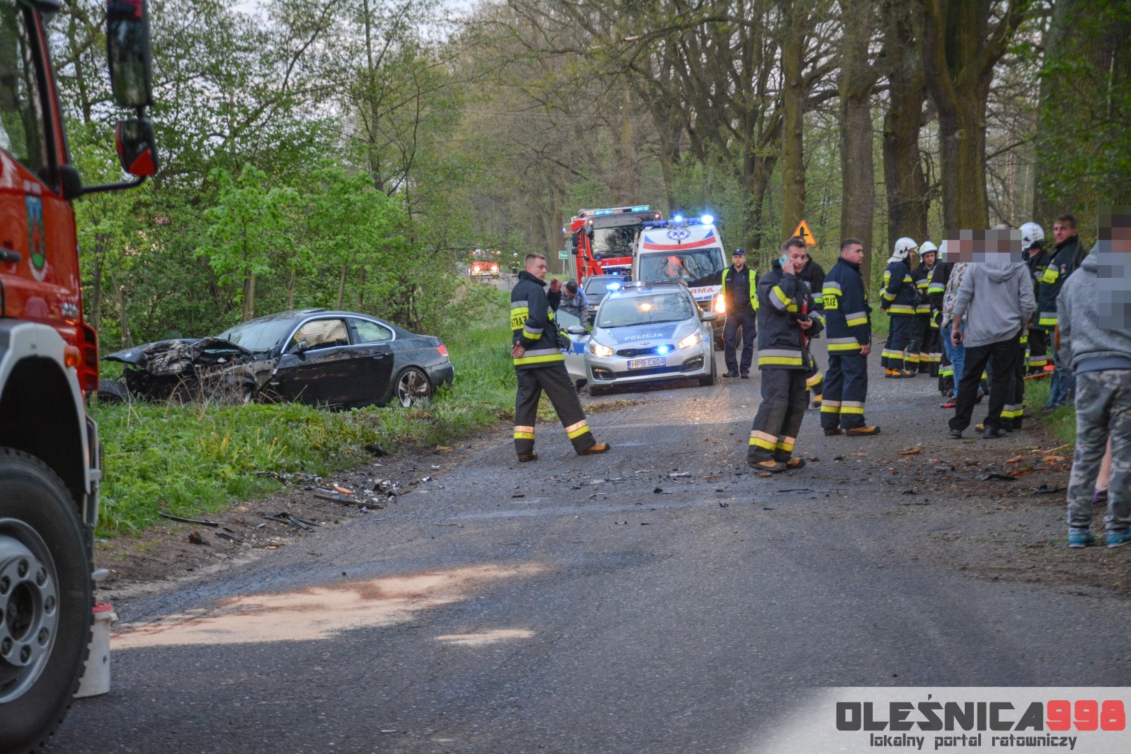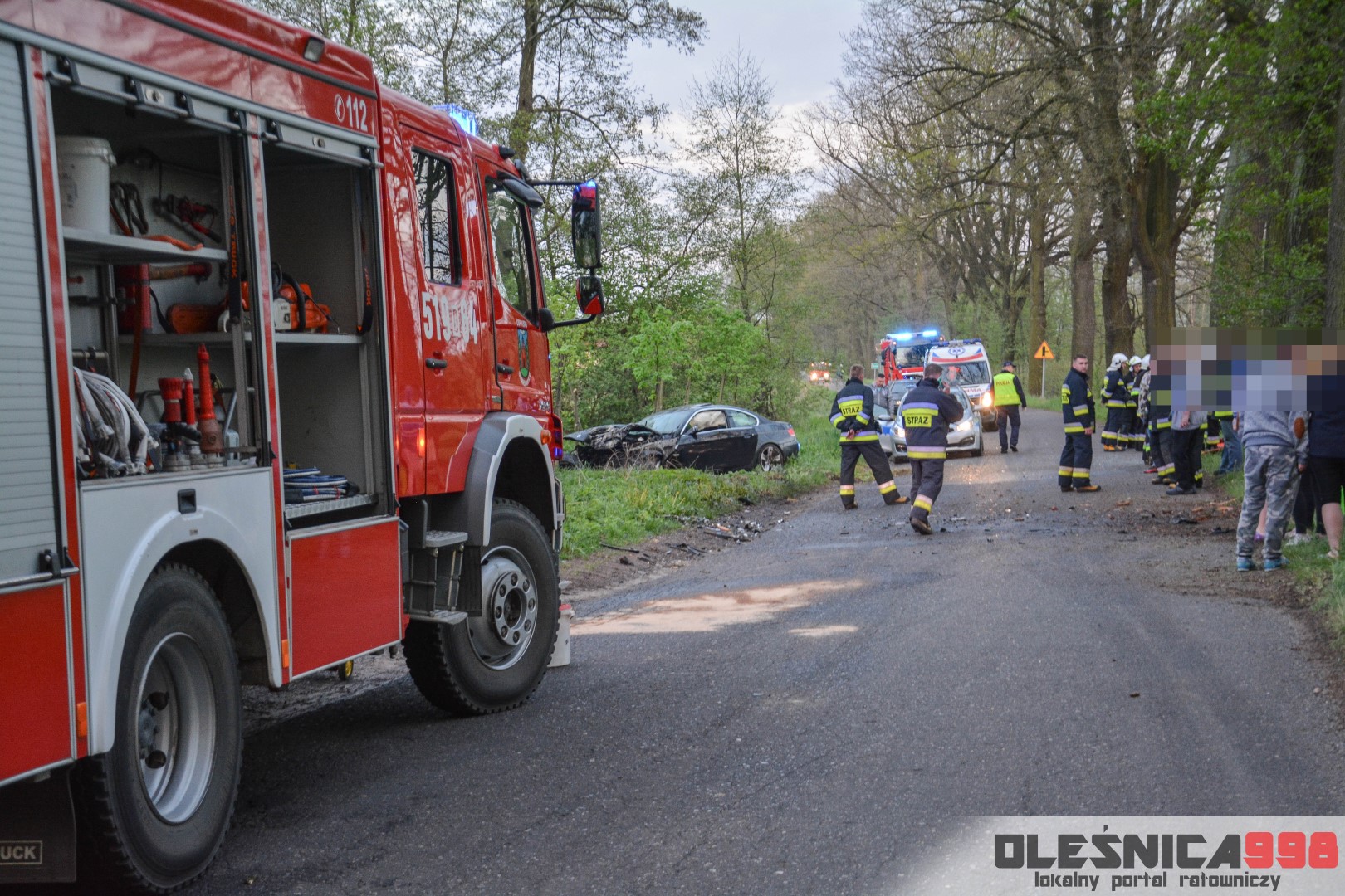 Dzisiejszego popołudnia, około godziny 19:20, w miejscowości Królewska Wola (gm. Międzybórz) doszło do groźnego wypadku drogowego. Poruszające się ze znaczną prędkością osobowe BMW nagle zjechało na pobocze a następnie z impetem uderzyło w pobliskie drzewo. Na miejscu interweniowało łącznie 6 zastępów Straży Pożarnej, dwa zespoły Ratownictwa Medycznego oraz patrole Policji. Z uwagi na poważnie brzmiące zgłoszenie, zmobilizowany został także śmigłowiec Lotniczego Pogotowia Ratunkowego.