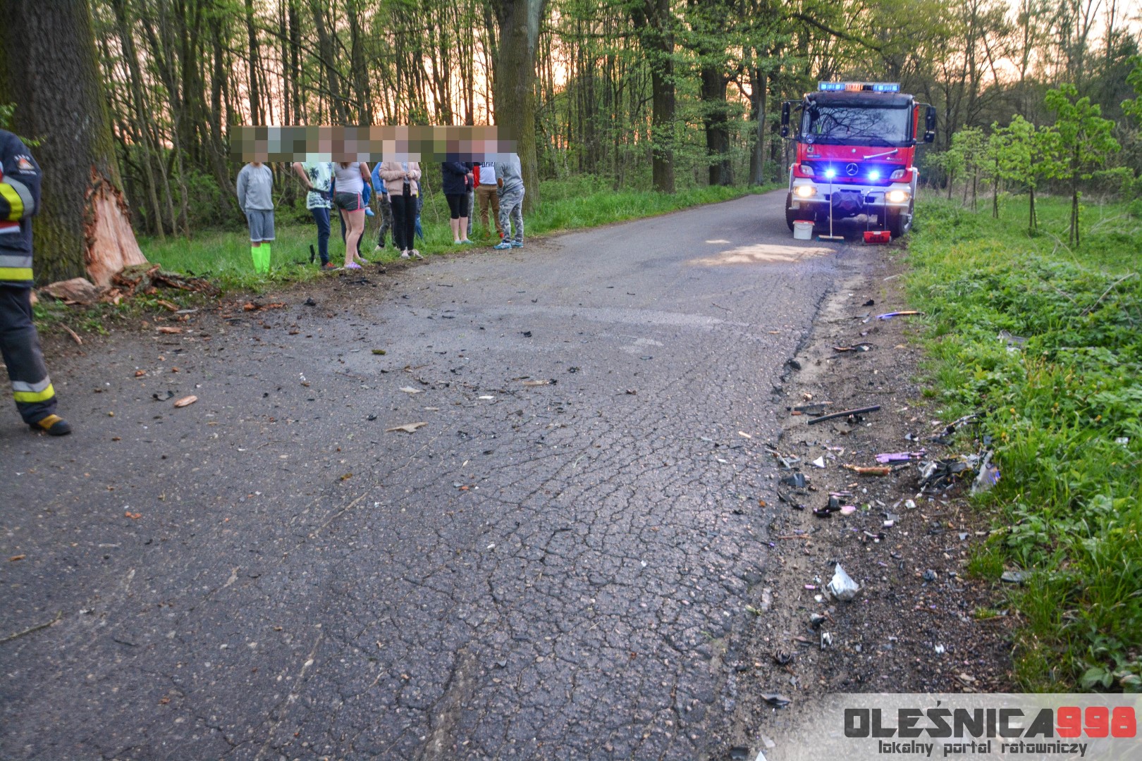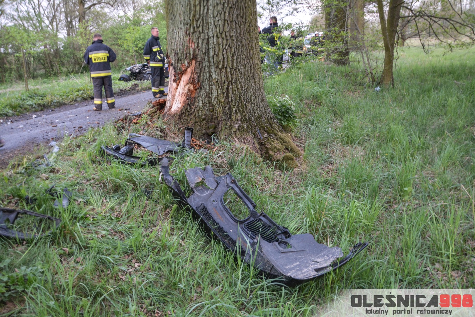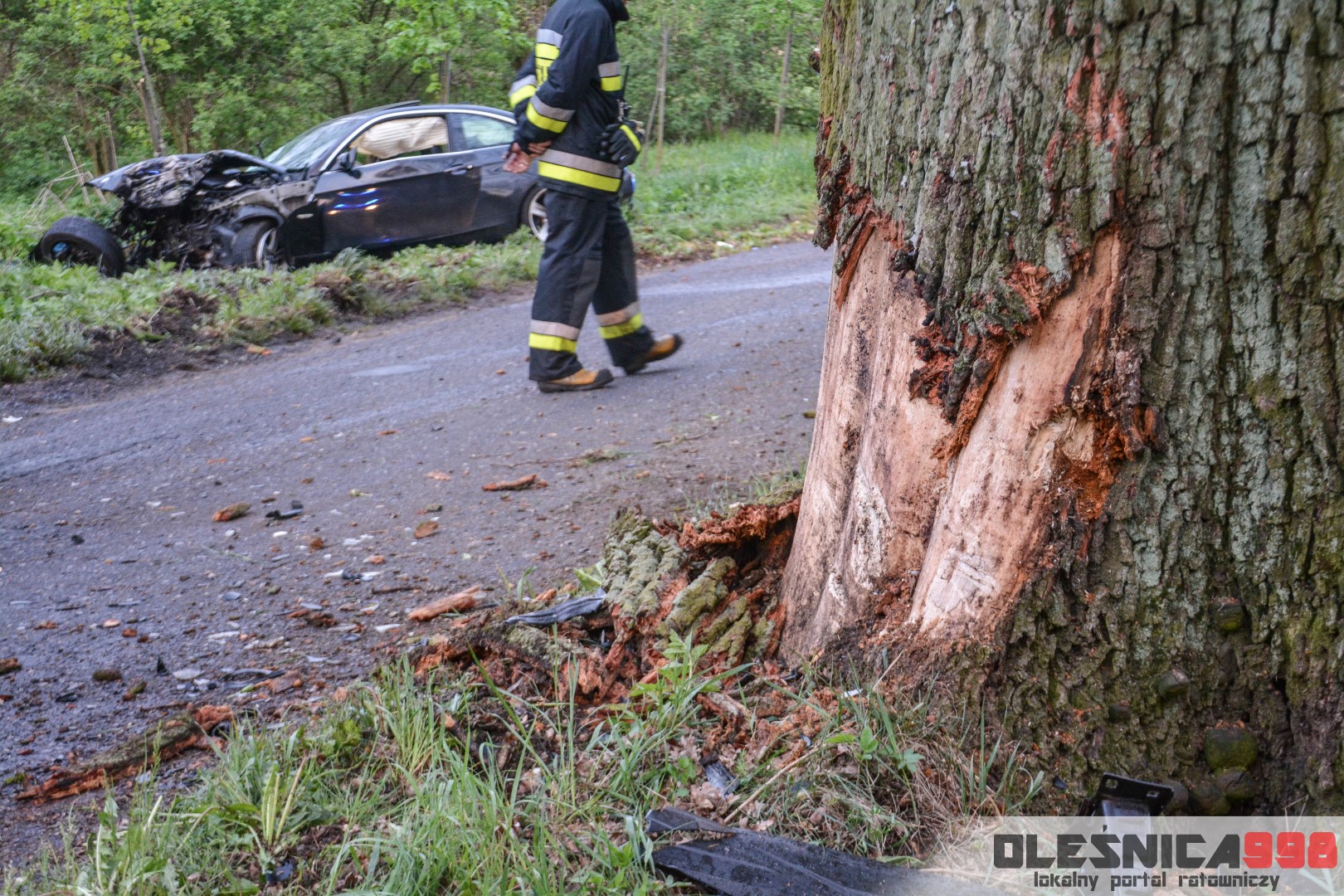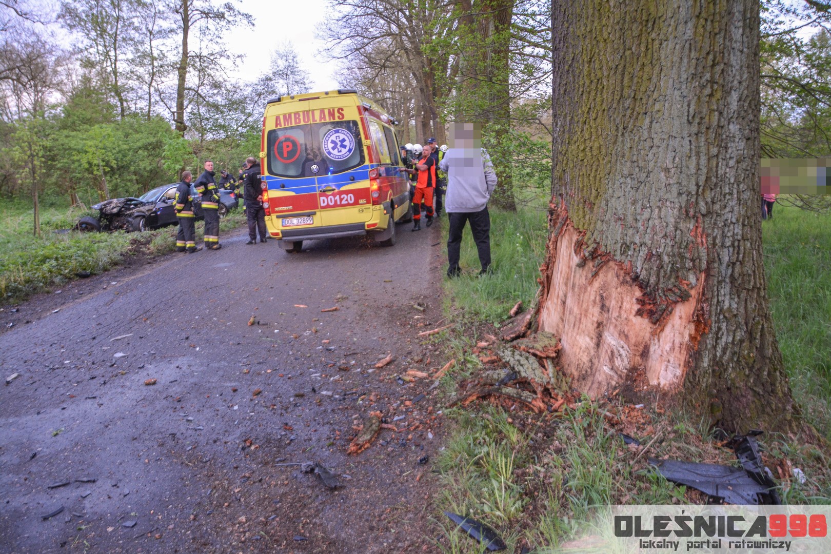 Dzisiejszego popołudnia, około godziny 19:20, w miejscowości Królewska Wola (gm. Międzybórz) doszło do groźnego wypadku drogowego. Poruszające się ze znaczną prędkością osobowe BMW nagle zjechało na pobocze a następnie z impetem uderzyło w pobliskie drzewo. Na miejscu interweniowało łącznie 6 zastępów Straży Pożarnej, dwa zespoły Ratownictwa Medycznego oraz patrole Policji. Z uwagi na poważnie brzmiące zgłoszenie, zmobilizowany został także śmigłowiec Lotniczego Pogotowia Ratunkowego.