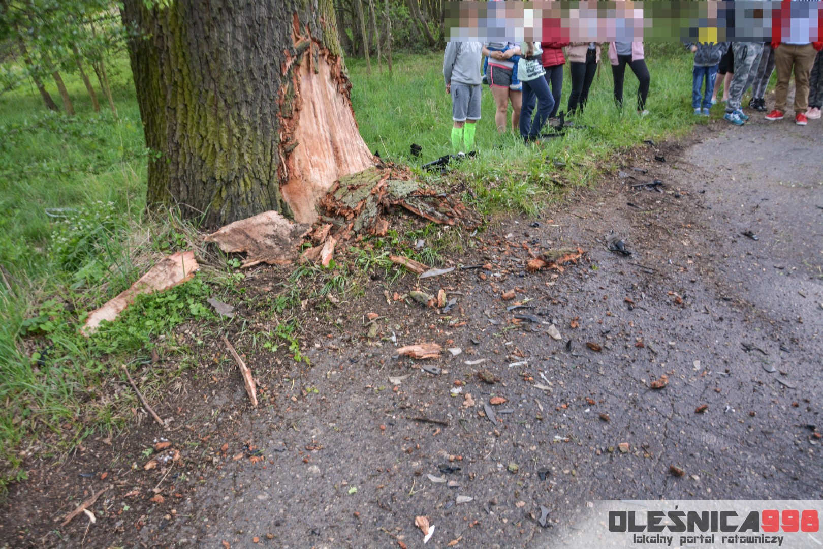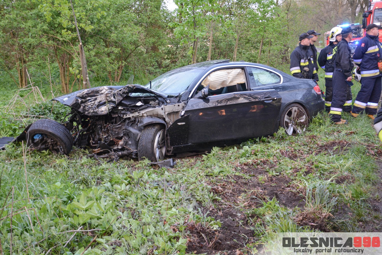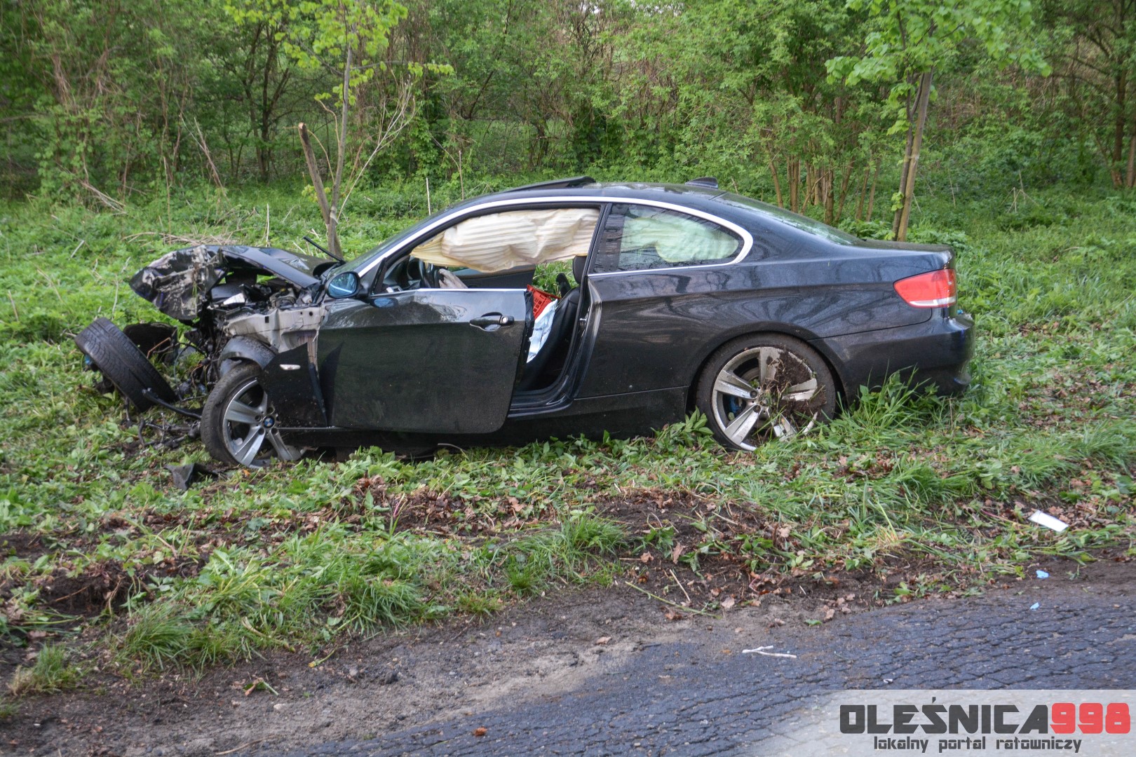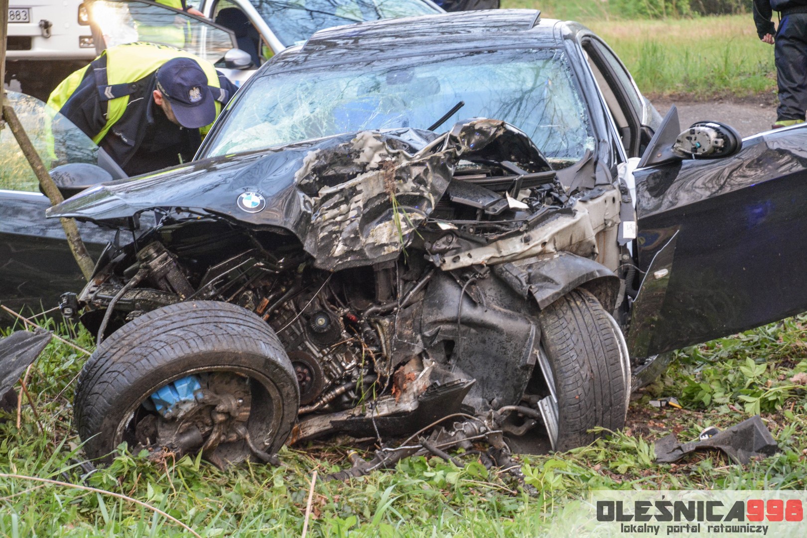 Rozpędzone BMW uderzyło w drzewo. Poważny wypadek w Królewskiej Woli