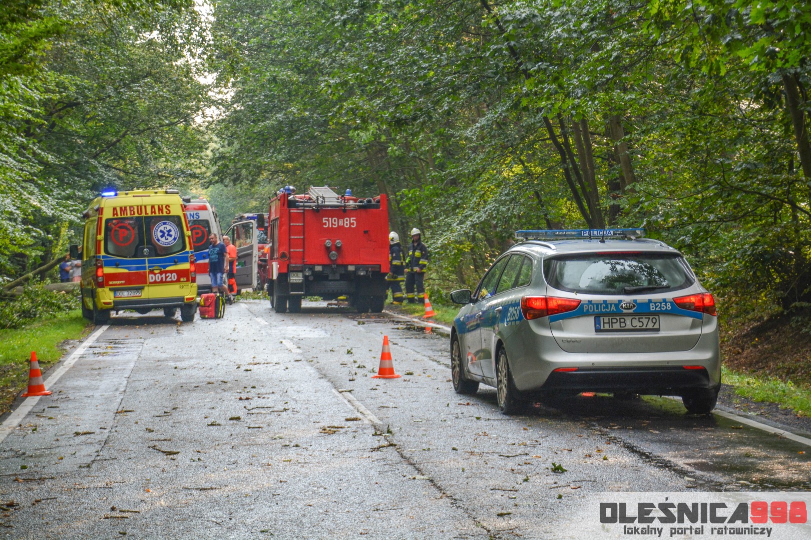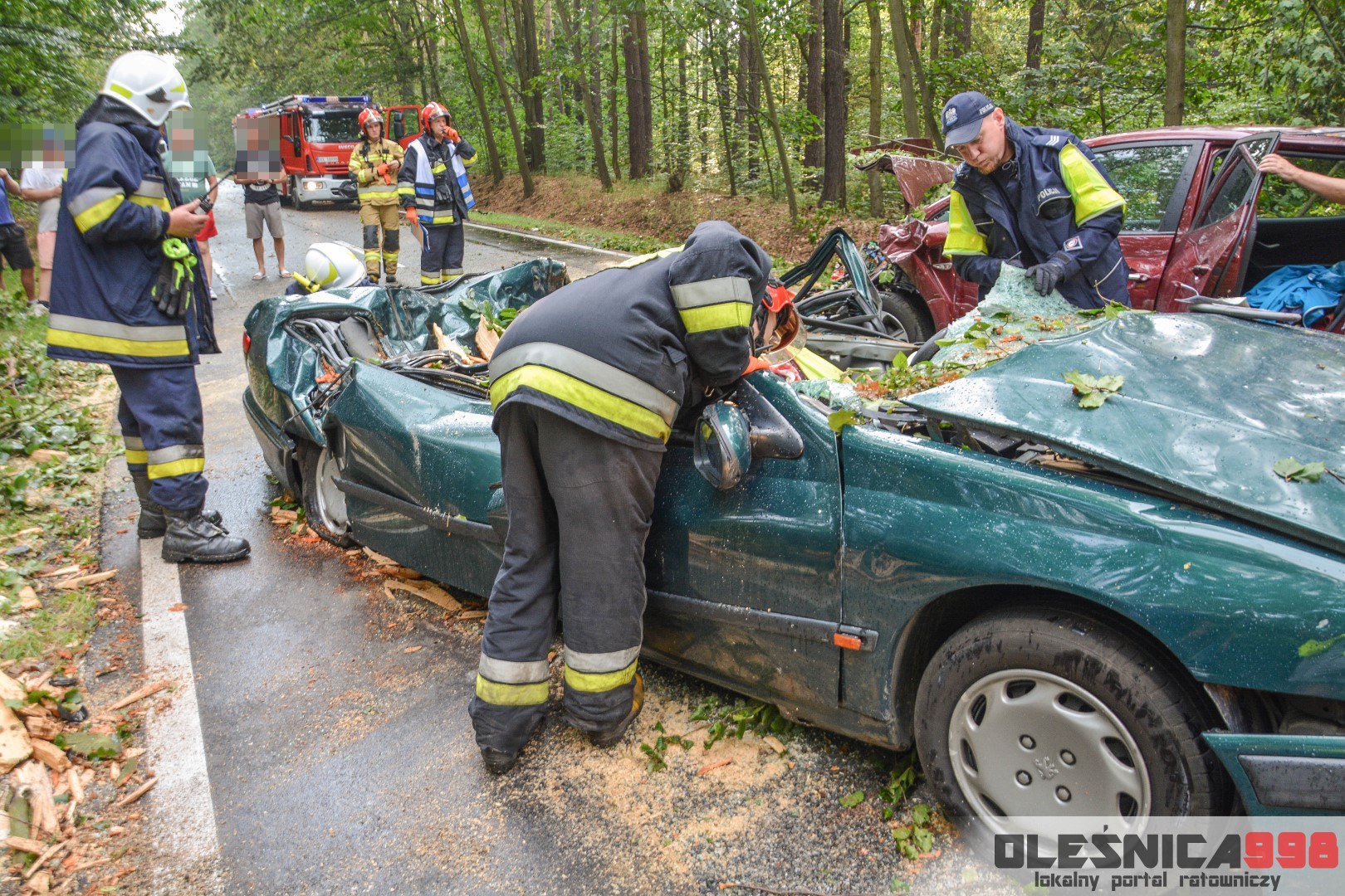 Dzisiejszego popołudnia, około godziny 16:30, do Dyżurnego Operacyjnego Stanowiska Kierowania KP PSP w Oleśnicy wpłynęło zgłoszenie o wypadku drogowym z udziałem dwóch samochodów osobowych na 352 kilometrze drogi krajowej nr 25. Z przekazanych informacji wynikało, że w uszkodzonych pojazdach znajdują się uwiezione osoby poszkodowane. Na miejsce niezwłocznie zostały zadysponowane dwa zastępy z JRG Oleśnica, zastęp z JRG Syców oraz przedysponowano, z usuwania wiatrołomów, zastęp OSP KSRG Drołtowice. Do zdarzenia wysłane zostały również dwa podstawowe zespoły Ratownictwa Medycznego z Twardogóry i Sycowa jak i również patrole Policji.