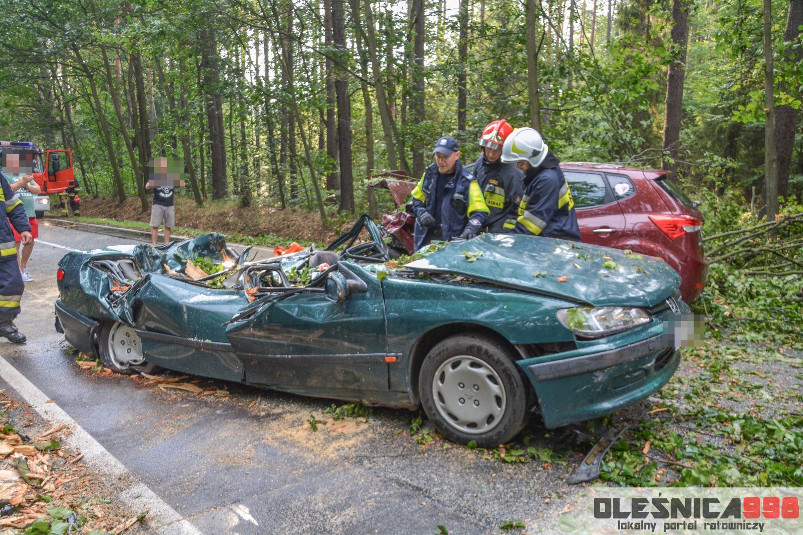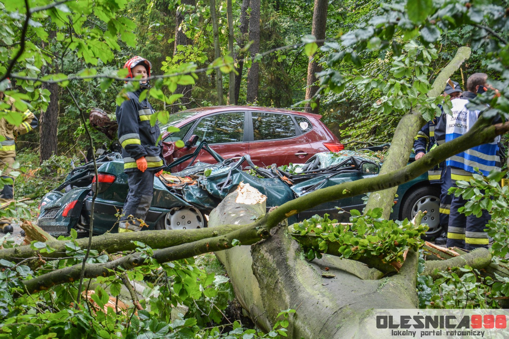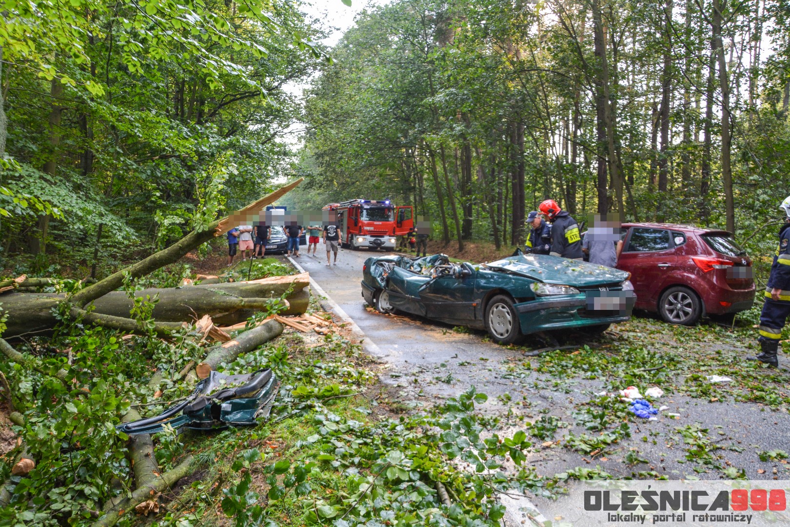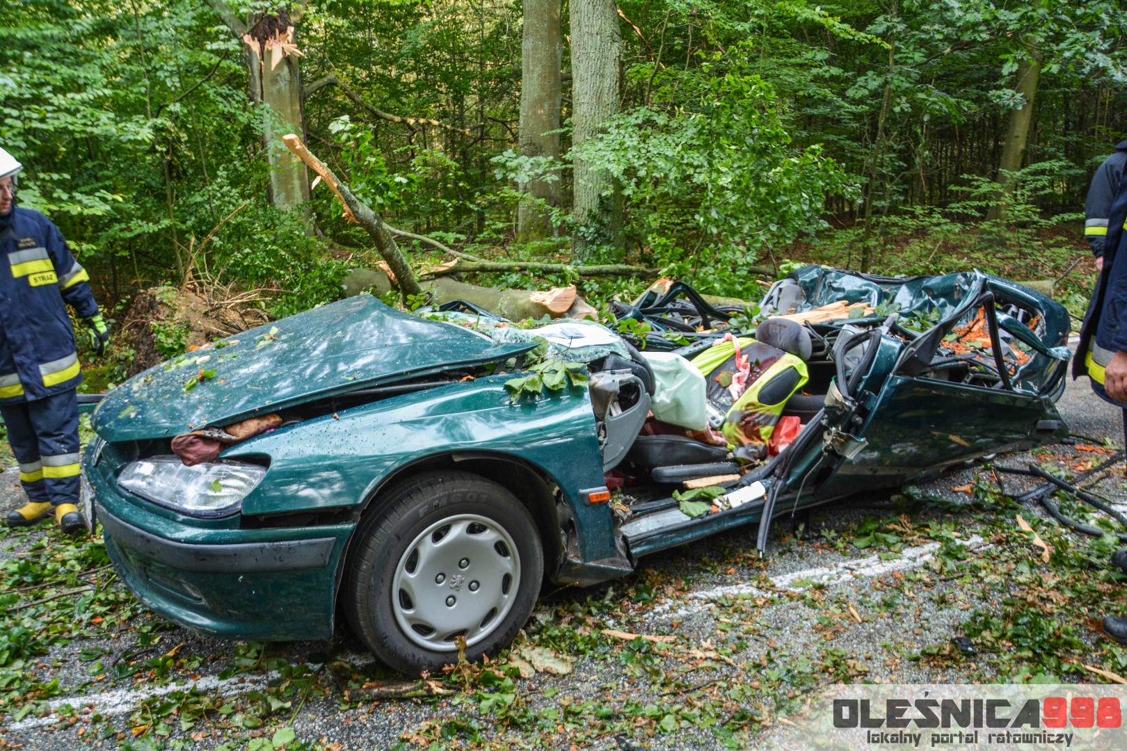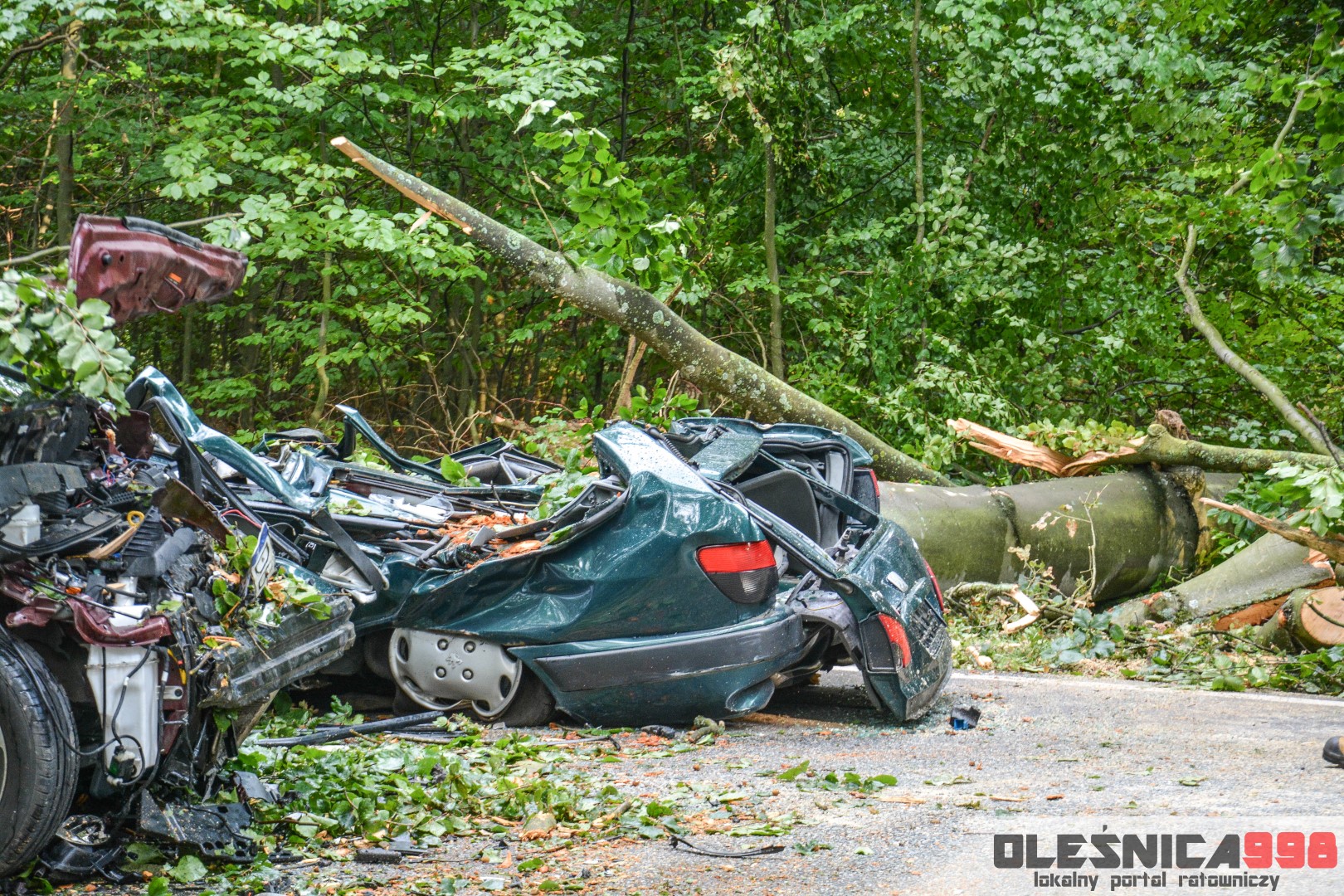 Spadające drzewo zmiażdżyło przejeżdżający samochód. Trzy osoby są poszkodowane
