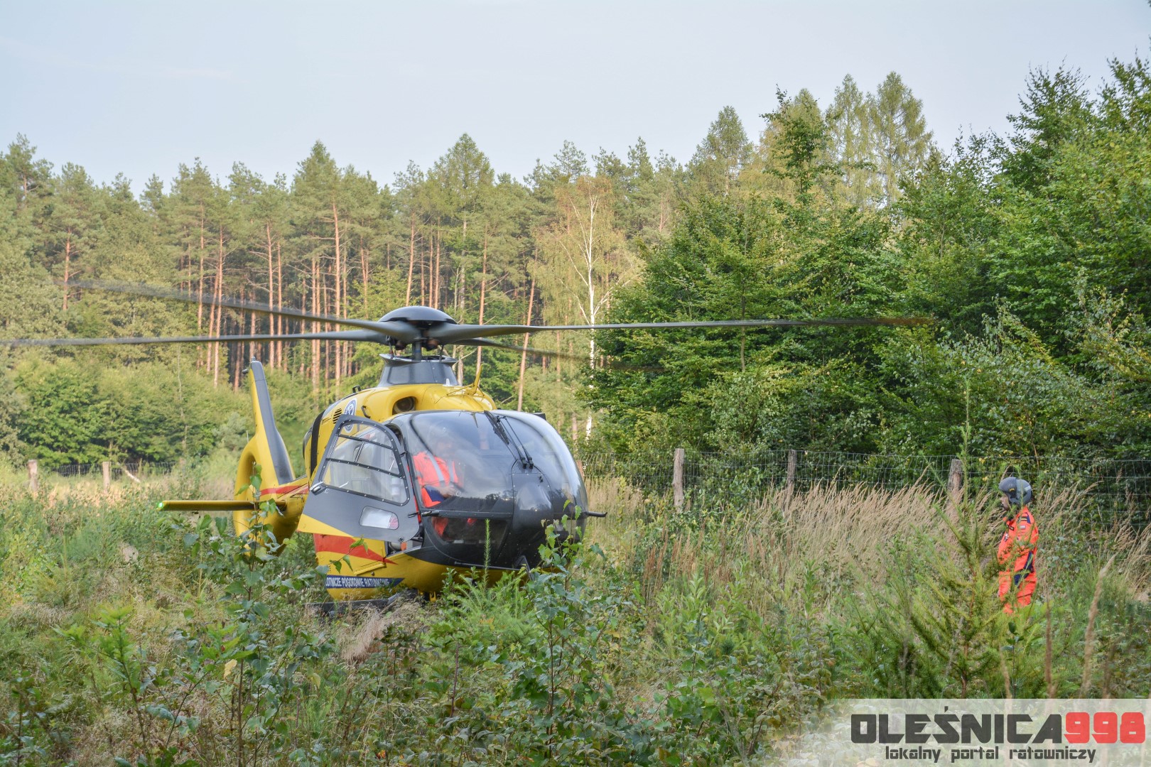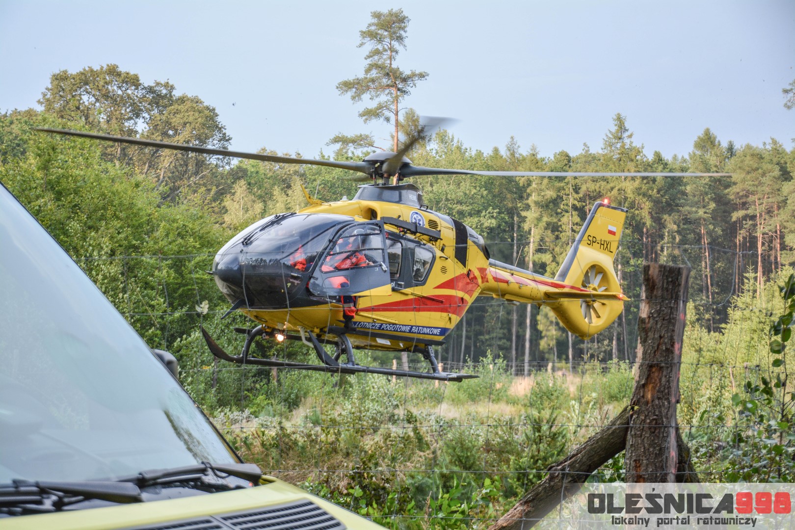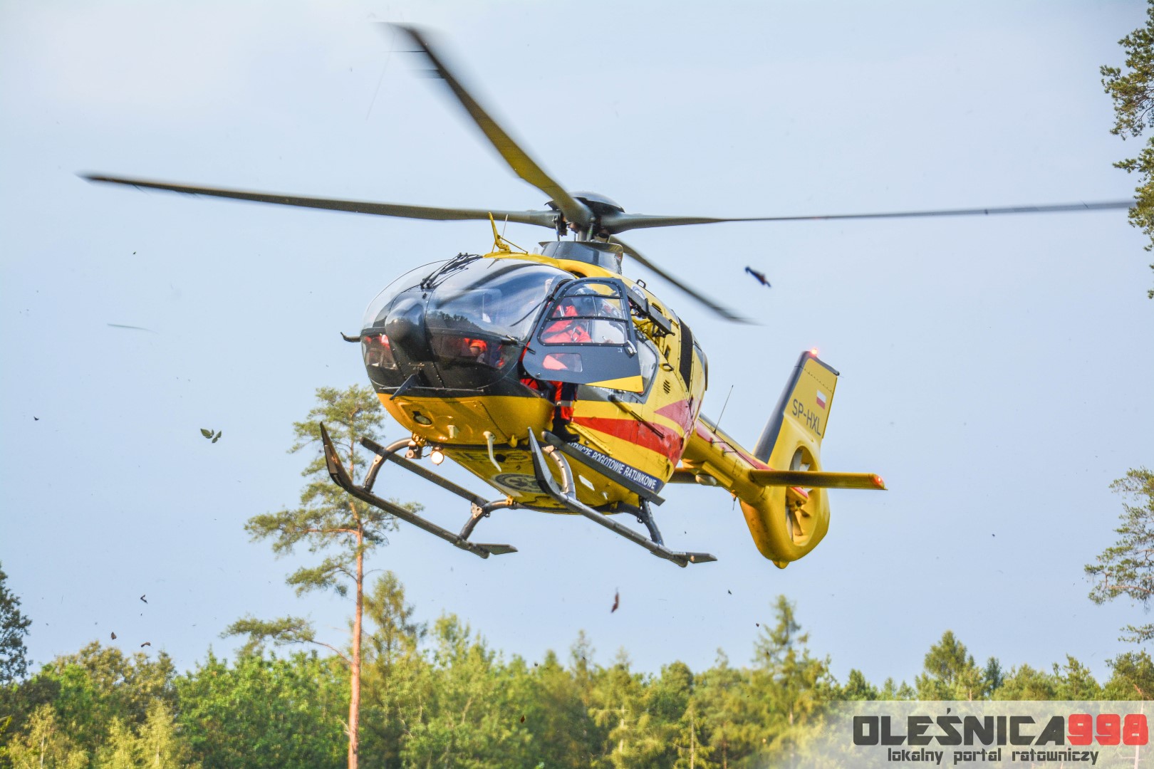Po dotarciu na miejsce dodatkowych sił i środków, poszkodowany został ewakuowany ze zmiażdżonego wraku, a następnie przekazany zespołowi Ratownictwa Medycznego. Ze względu na stan pacjenta, na miejsce został wezwany śmigłowiec Lotniczego Pogotowia Ratunkowego, który wylądował w pobliskim młodniku. Po zaopatrzeniu pacjenta na miejscu zdarzenia, został przetransportowany drogą lotniczą do wrocławskiego szpitala. Jak udało nam się ustalić, jego stan jest ciężki. Pozostałe dwie osoby zostały przetransportowane przez karetkę do oleśnickiego szpitala.