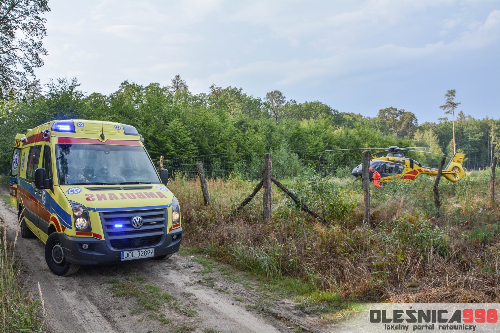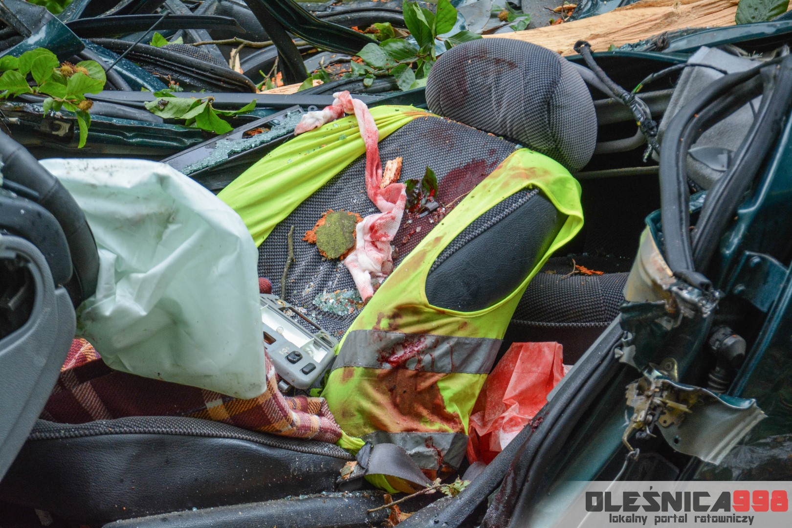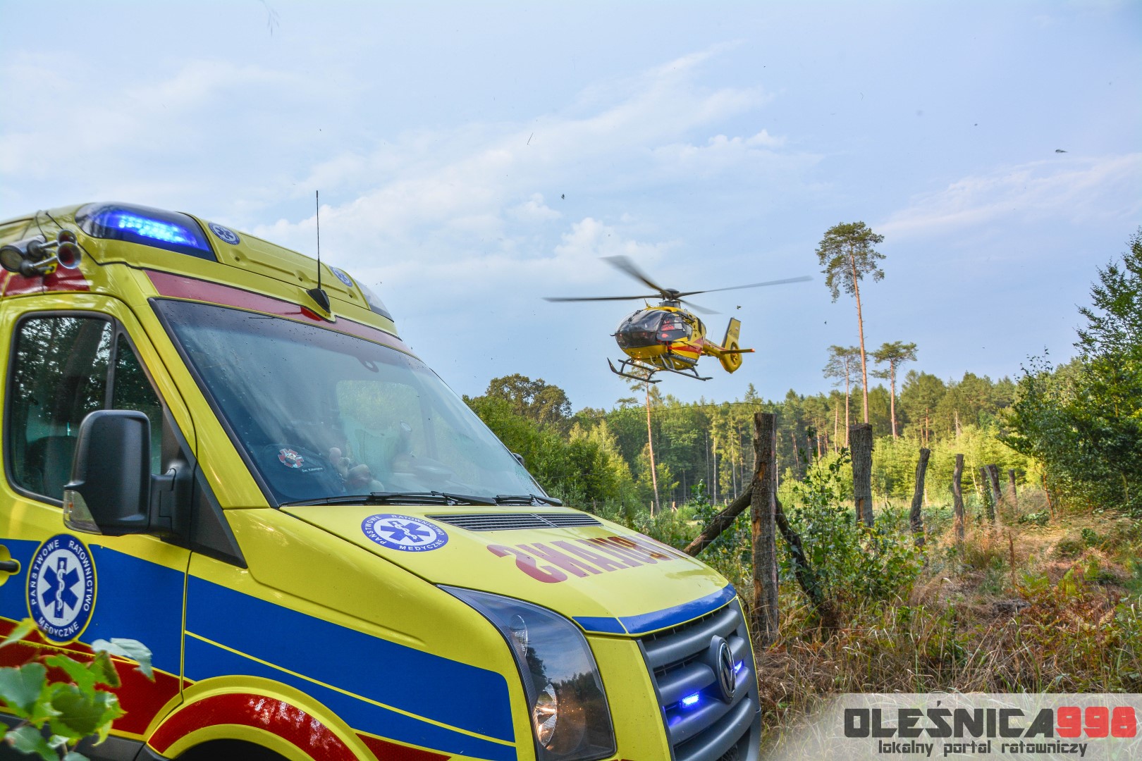 Po dotarciu na miejsce dodatkowych sił i środków, poszkodowany został ewakuowany ze zmiażdżonego wraku, a następnie przekazany zespołowi Ratownictwa Medycznego. Ze względu na stan pacjenta, na miejsce został wezwany śmigłowiec Lotniczego Pogotowia Ratunkowego, który wylądował w pobliskim młodniku. Po zaopatrzeniu pacjenta na miejscu zdarzenia, został przetransportowany drogą lotniczą do wrocławskiego szpitala. Jak udało nam się ustalić, jego stan jest ciężki. Pozostałe dwie osoby zostały przetransportowane przez karetkę do oleśnickiego szpitala.