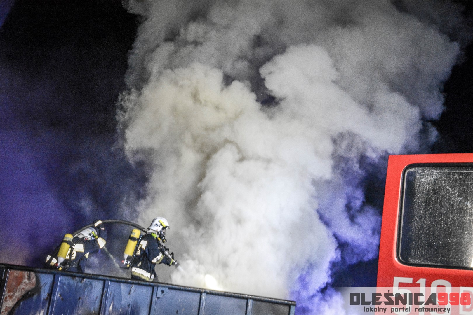 Łącznie na miejscu interweniowało 6 zastępów gaśniczych- po dwa z OSP Bierutów i Zbytowa oraz po jednym z JRG Oleśnica i OSP Wabienice. Strażacy przez wiele godzin zmagali się z trudnym do ugaszenia pożarem, który co chwila ponownie się rozpalał. W działaniach wykorzystano kilka prądów wody jak również piany gaśniczej, a Ratownicy pracowali w aparatach ochrony układu oddechowego.