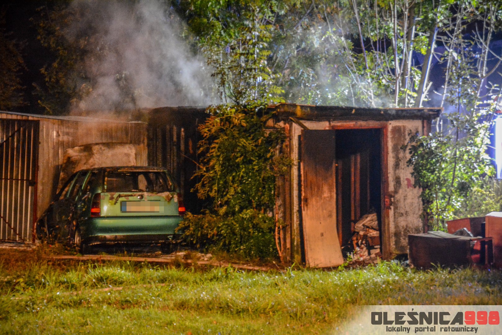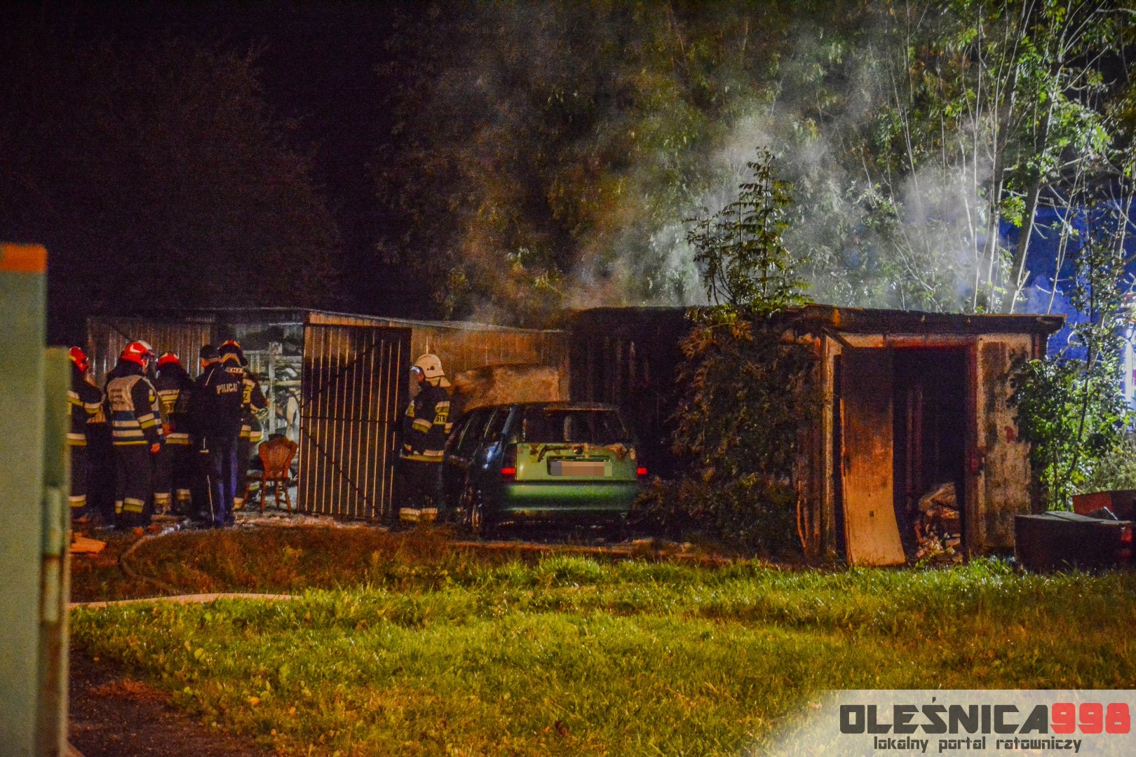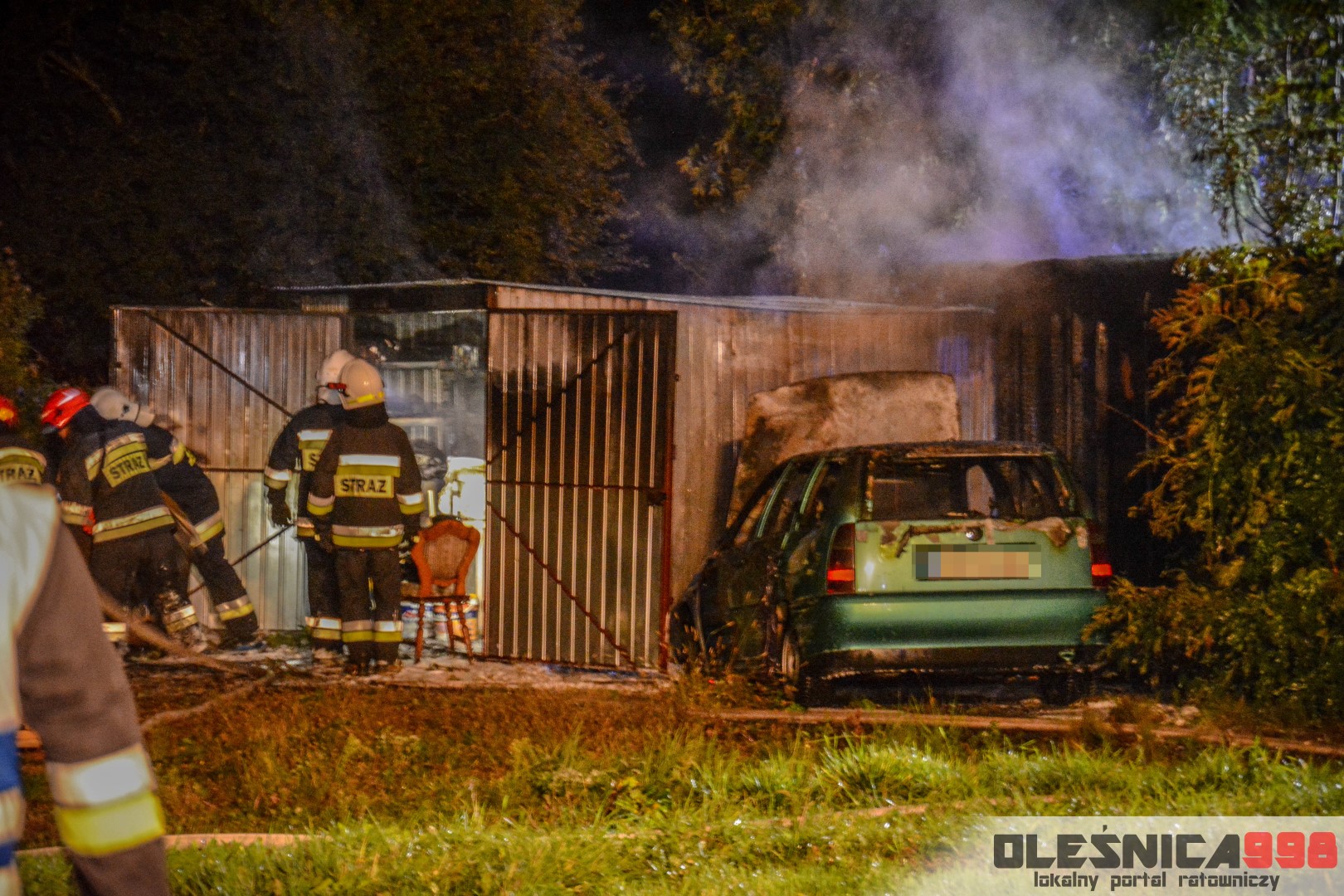 Jako pierwsi na miejsce dotarli Policjanci oleśnickiej Komendy, a tuż po nich zastępy Państwowej Straży Pożarnej z Oleśnicy. Dowódca po przeprowadzonym rozpoznaniu ustalił, że w wyniku pożaru samochodu osobowego marki Volkswagen Polo doszło do przeniesienia się ognia na pobliskie dwa budynki gospodarcze, w których przechowywane były motocykle a także elementy wyposażenia domowego.