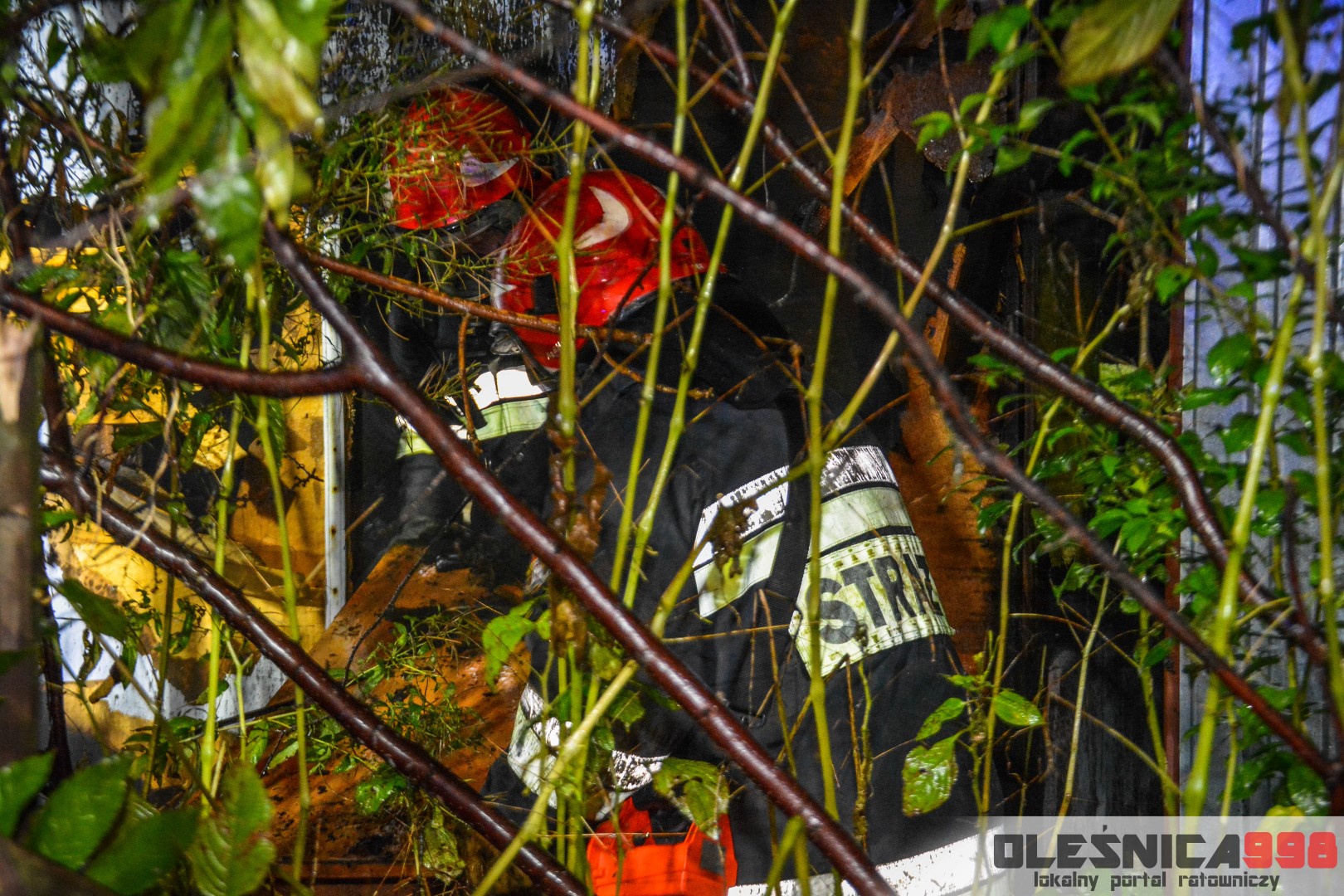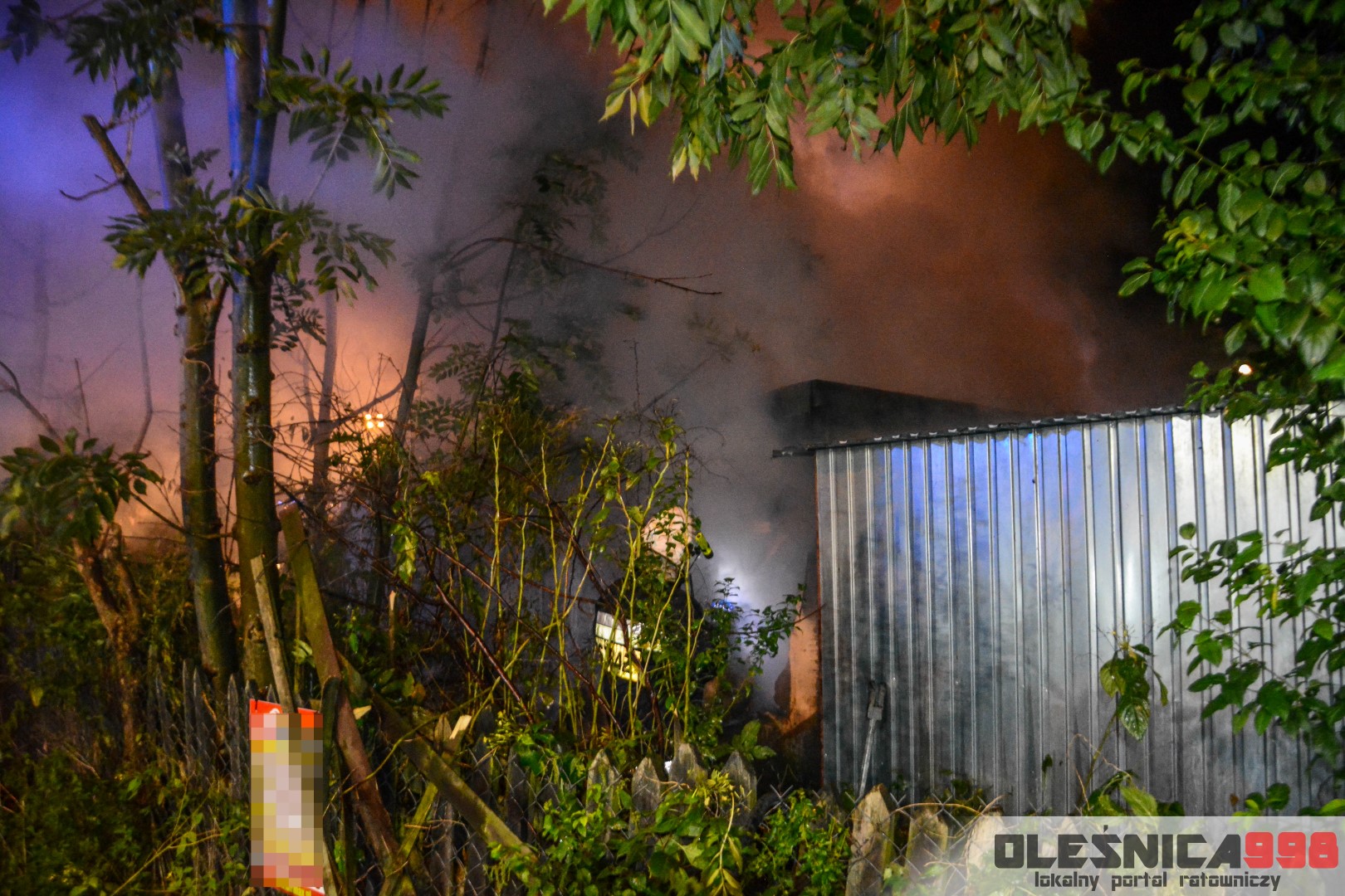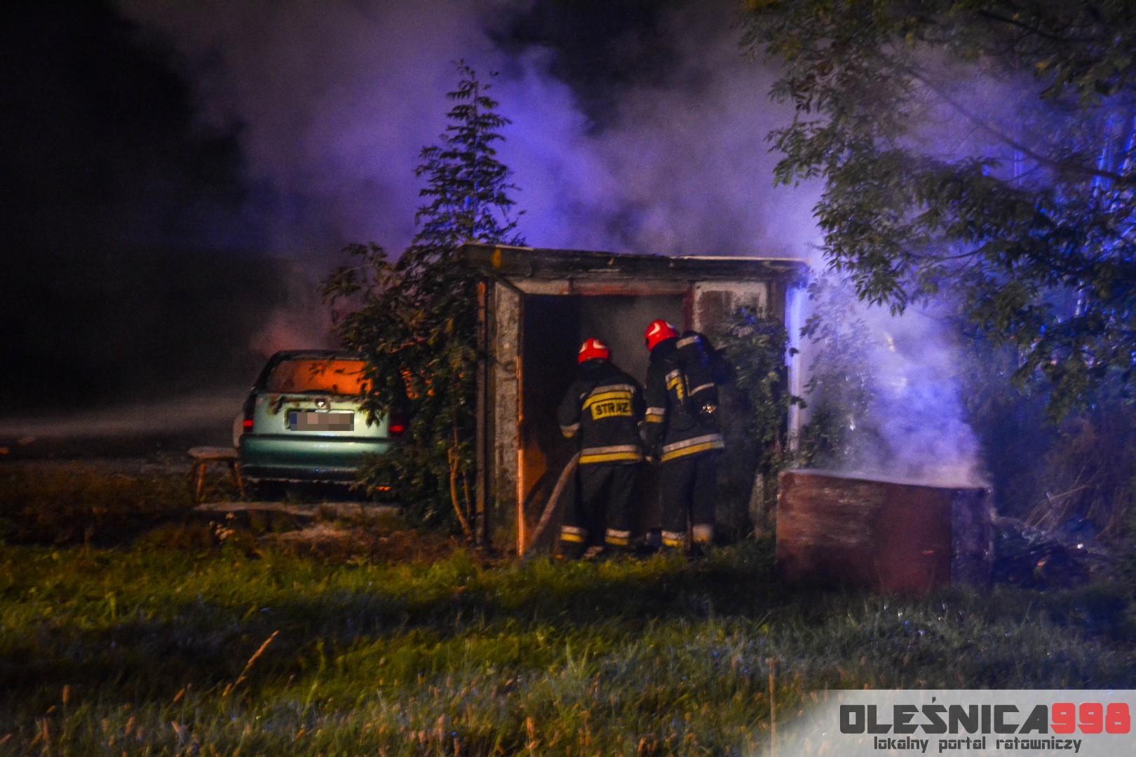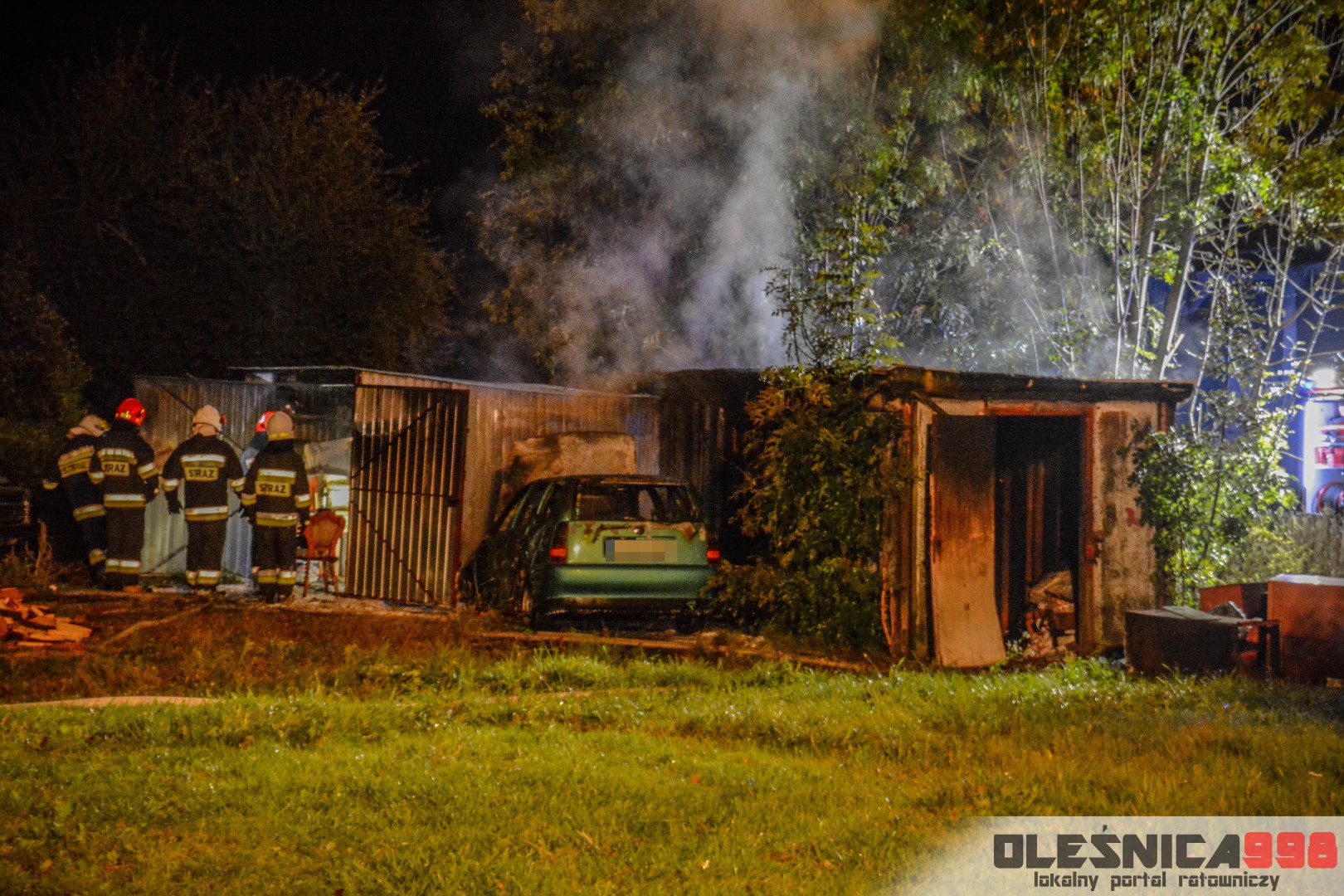 Jako pierwsi na miejsce dotarli Policjanci oleśnickiej Komendy, a tuż po nich zastępy Państwowej Straży Pożarnej z Oleśnicy. Dowódca po przeprowadzonym rozpoznaniu ustalił, że w wyniku pożaru samochodu osobowego marki Volkswagen Polo doszło do przeniesienia się ognia na pobliskie dwa budynki gospodarcze, w których przechowywane były motocykle a także elementy wyposażenia domowego.