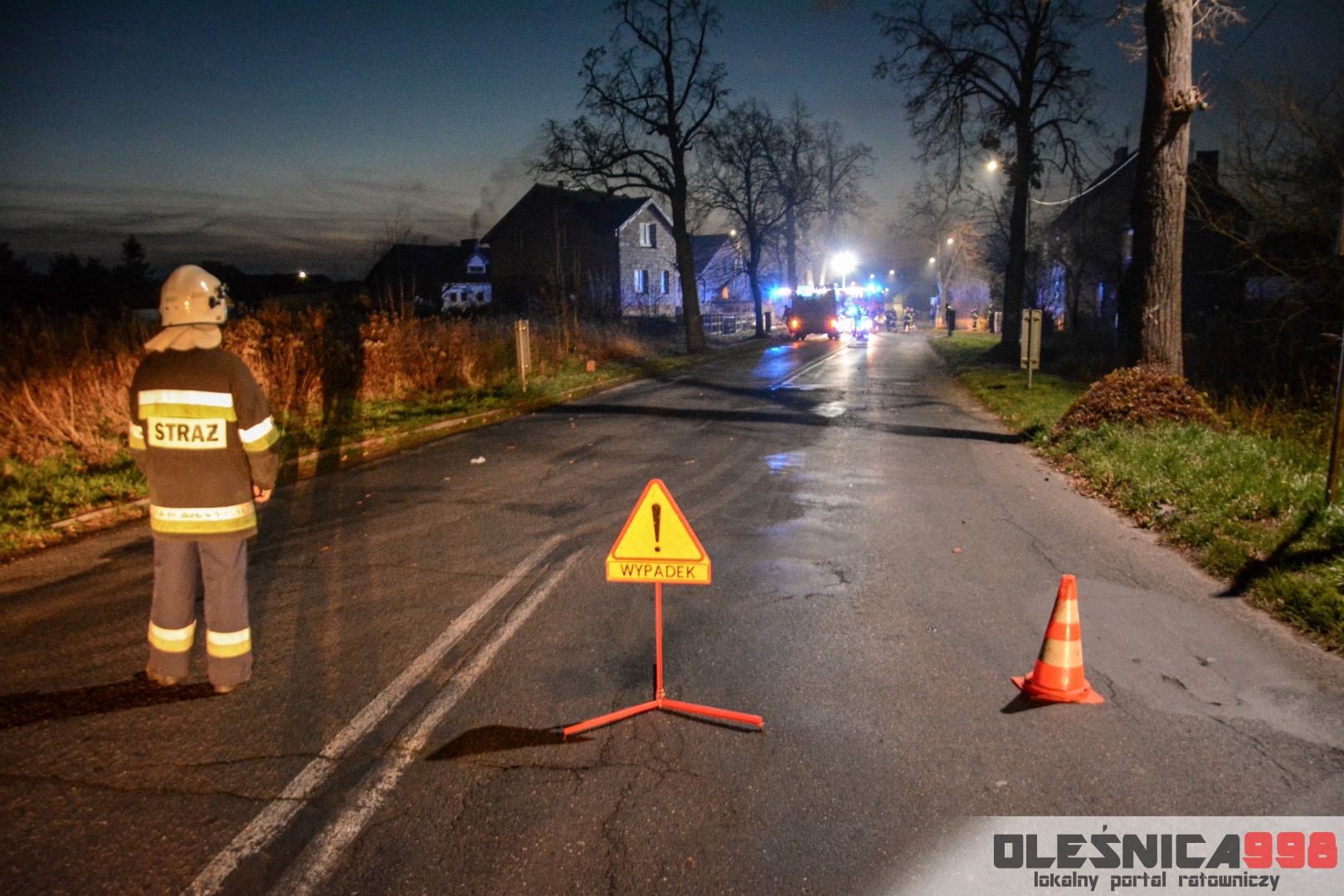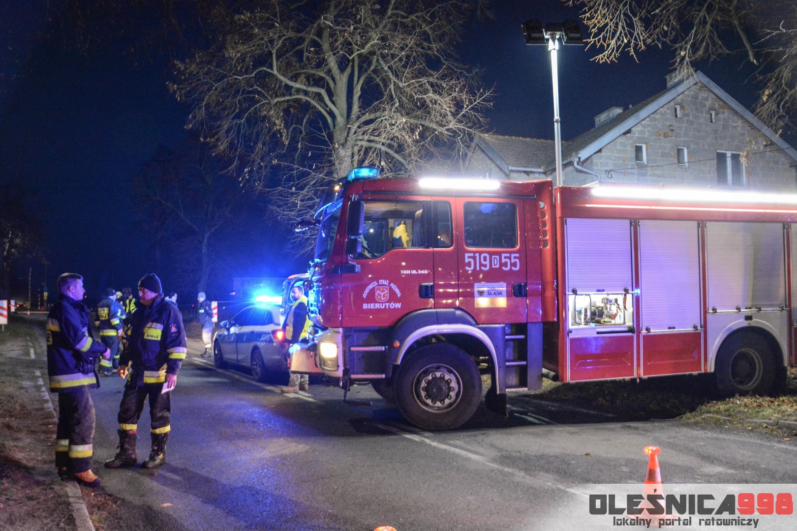 Informację o zdarzeniu oleśnickie służby odebrały około 25 minut po godzinie 15. W tym czasie zastępy JRG Oleśnica działały przy upadku paralotniarza. Dwa z trzech zespołów Straży Pożarnej zostały niezwłocznie przedysponowane na miejsce następnego zdarzenia. Zaalarmowana została również jednostka OSP KSRG Bierutów. To właśnie bierutowscy Ochotnicy dotarli jako pierwsi na miejsce wypadku. Do akcji zmoblilzowany został również śmigłowiec Lotniczego Pogotowia Ratunkowego, który wraz z naziemnym zespołem Ratownictwa Medycznego po kilkunastu minutach pojawił się na miejscu.