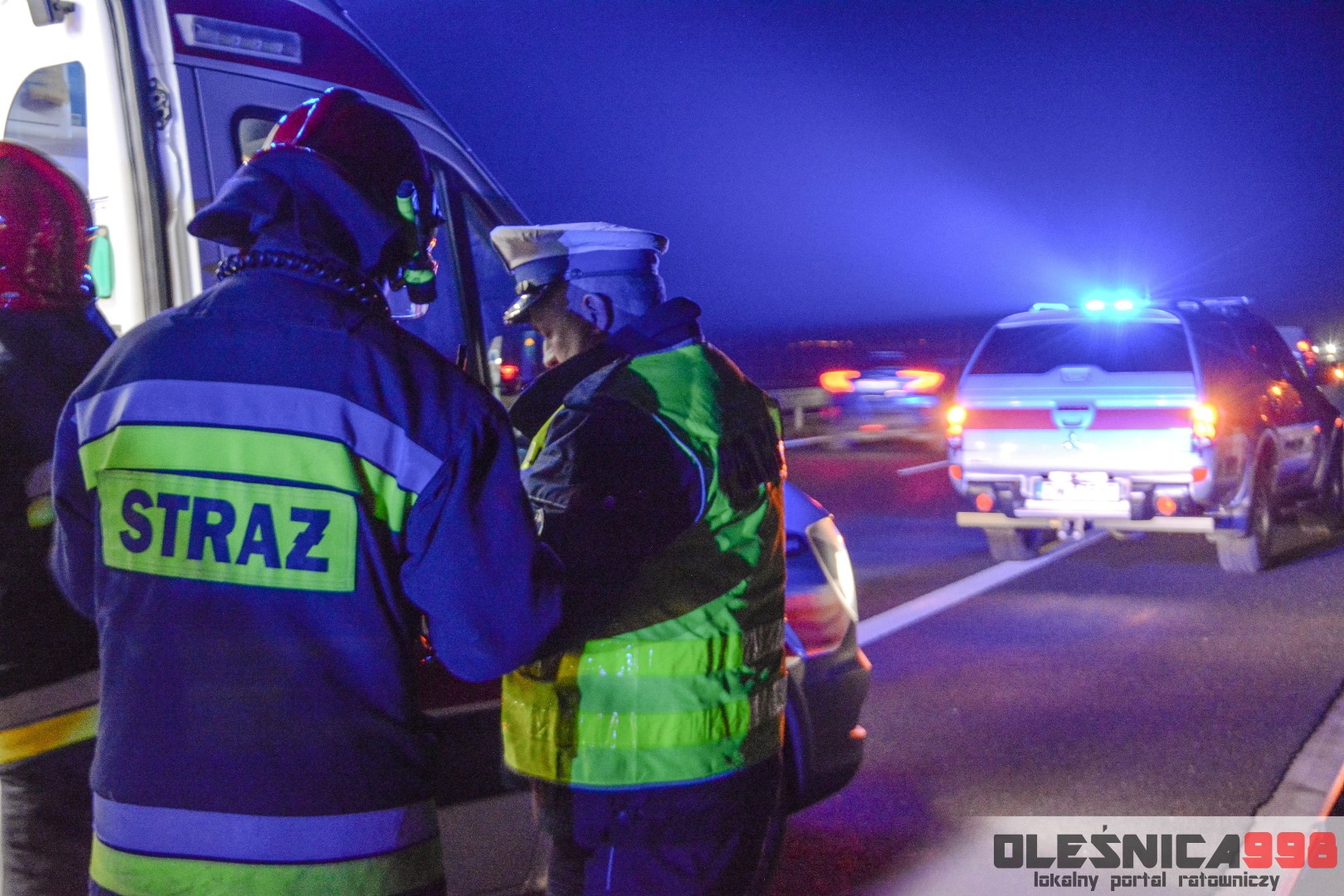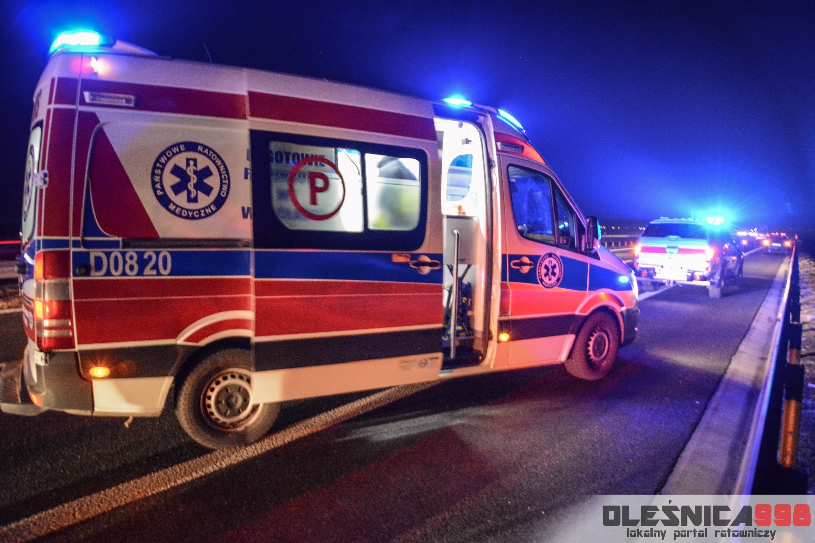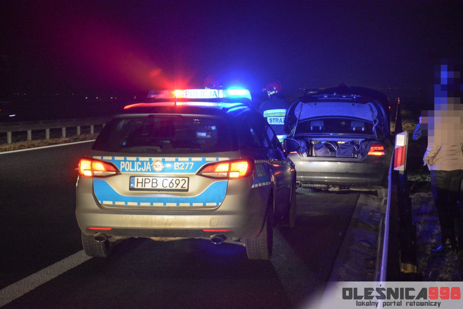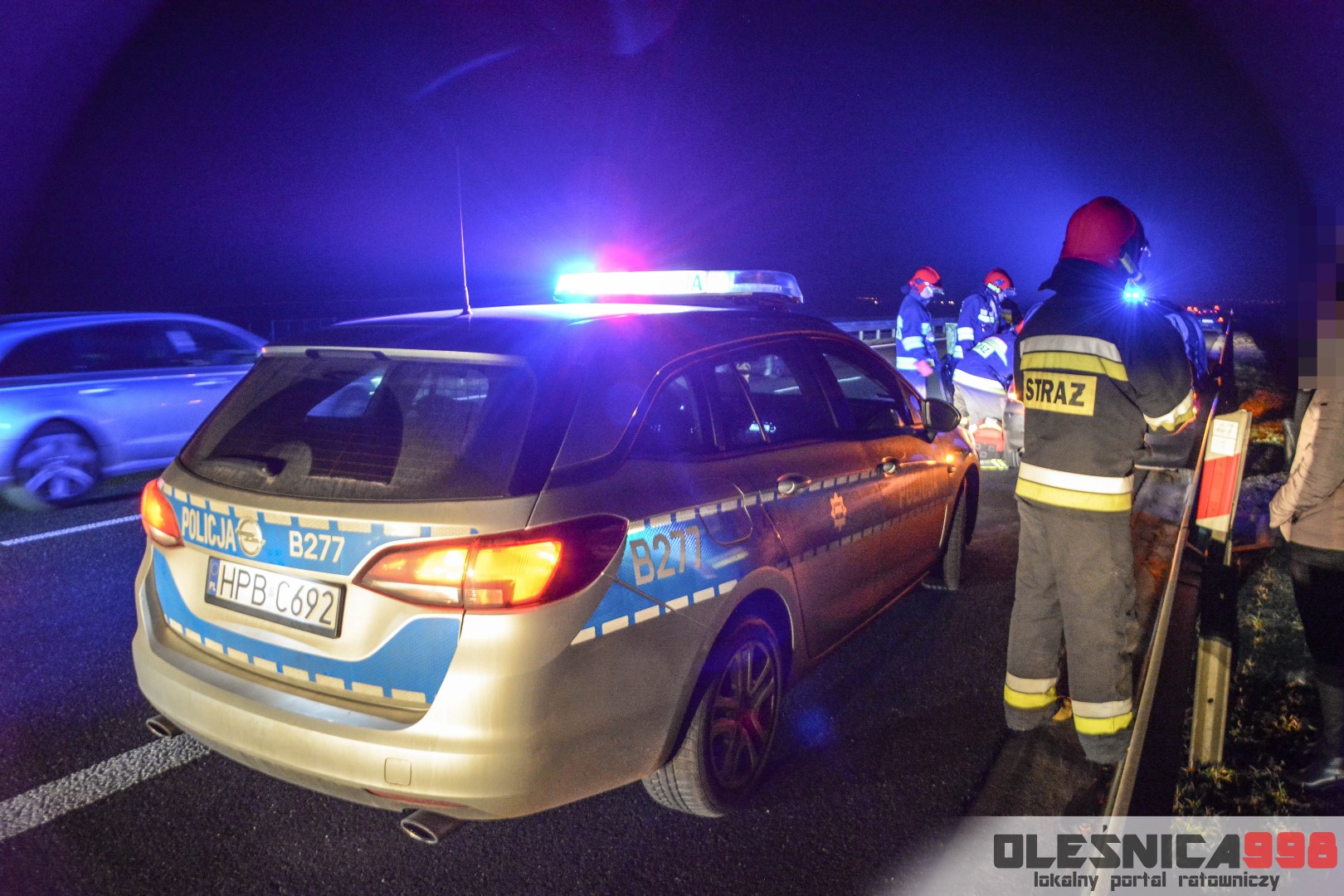 Dziś, około godziny 17:40, do SK KP PSP w Oleśnicy wpłynęło zgłoszenie o zdarzeniu drogowym na 47 kilometrze drogi ekspresowej nr 8. Z przekazanych informacji wynikało, że samochód osobowy uderzył w bariery energochłonne a jedna osoba, nim podróżująca, jest poszkodowana. Na miejsce niezwłocznie udały się dwa zastępy z JRG Oleśnica. Zadysponowane zostały również pozostałe służby – Policja a także Pogotowie Ratunkowe.