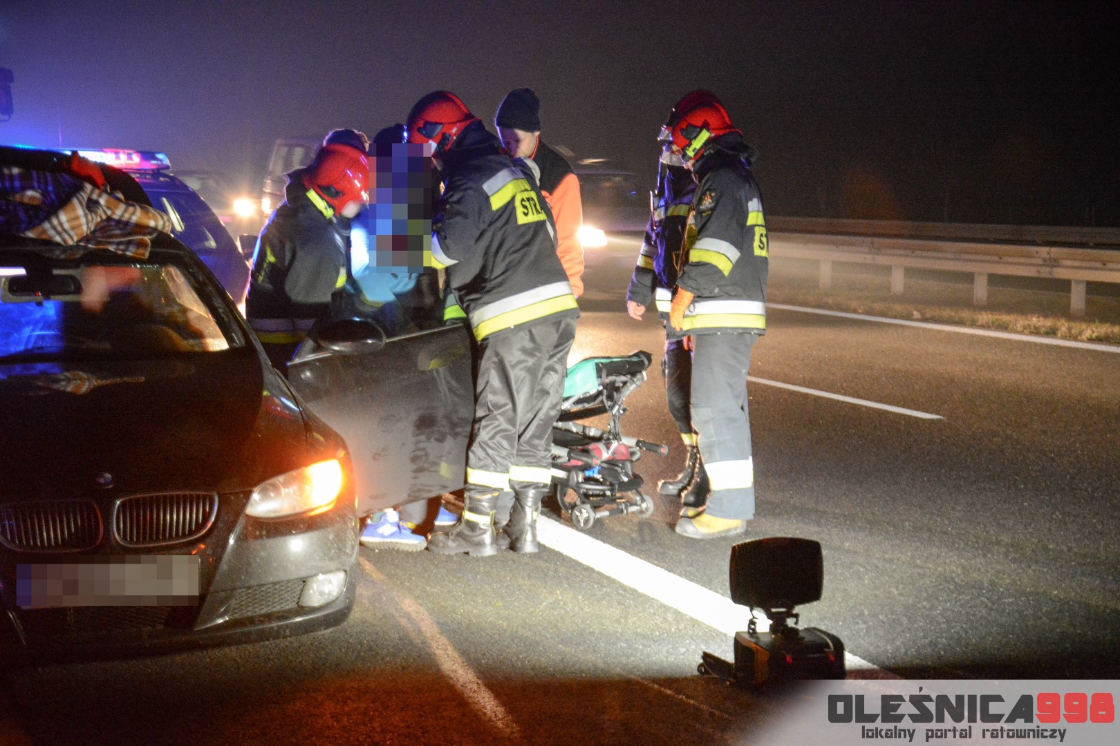 Z momentem dotarcia wrocławskiego podstawowego zespołu Ratownictwa Medycznego na miejsce, pacjent został przekazany Ratownikom Medycznym. Następnie, po udzieleniu niezbędnej pomocy medycznej na miejscu, został przetransportowany do jednego z wrocławskich szpitali. To najprawdopodobniej udar, na który wskazują występujące objawy, doprowadził do zaistnienia zdarzenia. Jak udało nam się ustalić, BWM miało zjechać na pas awaryjny a następnie przez kilkaset metrów sunąc ocierając się o barierę energochłonną.