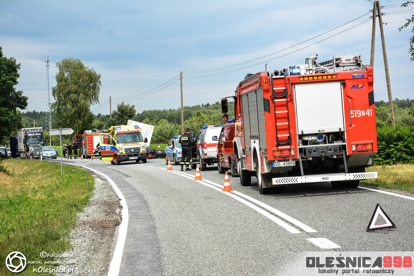 -Poważny wypadek motocyklisty i osobówki w centrum Oleśnicy. Piątkowym wieczorem, na skrzyżowaniu ulicy Bratniej z Wałową doszło do zderzenia motocykla z samochodem osobowym. Kierujący jednośladem, po uderzeniu w Volkswagena Fox, doznał poważnych obrażeń. Trafił pod opiekę zespołu Ratownictwa Medycznego a następnie w stanie ciężkim został przetransportowany do szpitala. Sprawczyni wypadku, jak i poszkodowany z nim mężczyzna, była trzeźwa. Na miejscu przez kilka godzin pracowały służby a ruch był wstrzymany.