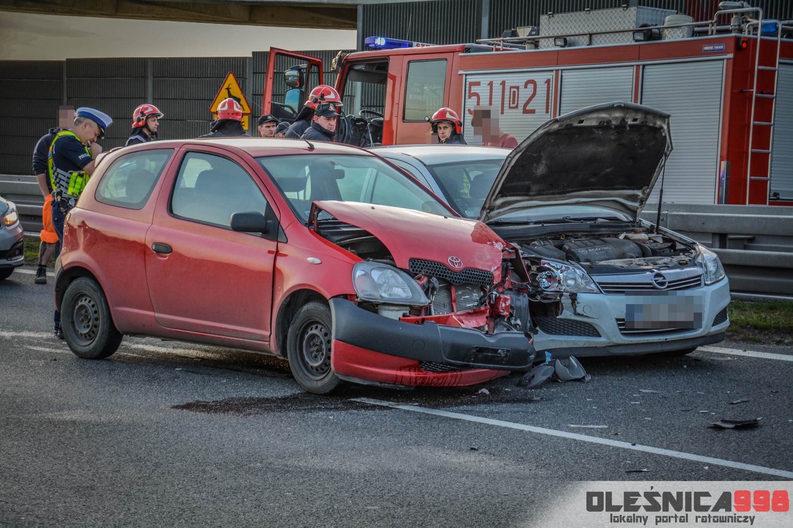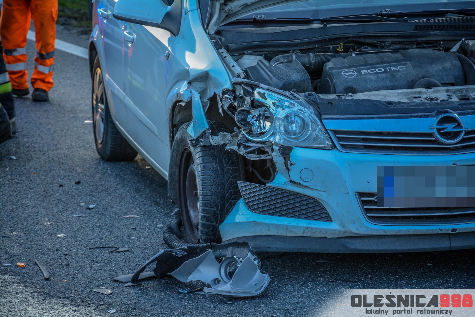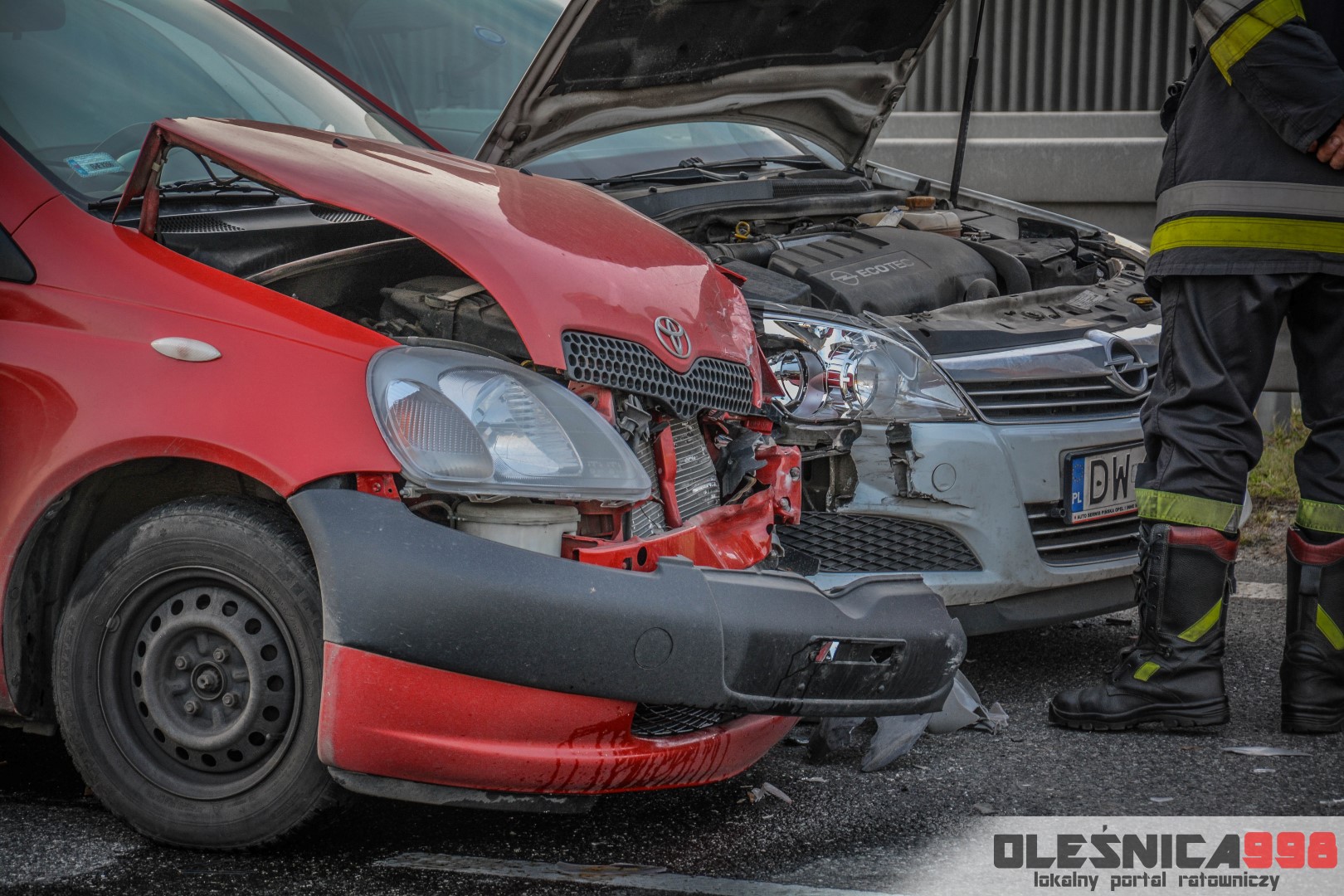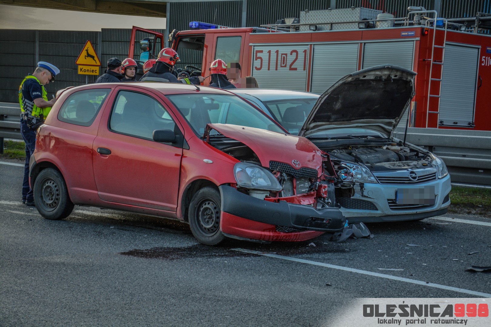 Około godziny 18:20, na trasie S8, tuż przed węzłem Oleśnica Zachód doszło do kolejnego dziś zdarzenia drogowego. Zderzyły się tam osobowa Toyota Yaris i Opel Astra. Na miejscu zjawiły się dwa zastępy Strażaków, podstawowa karetka Pogotowia Ratunkowego oraz patrol Policji.