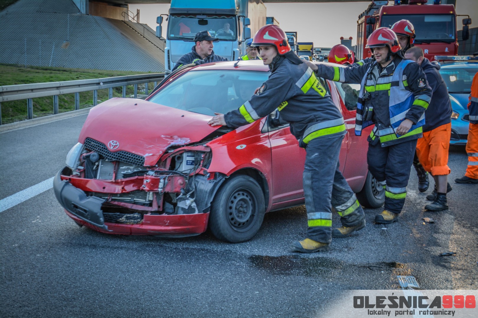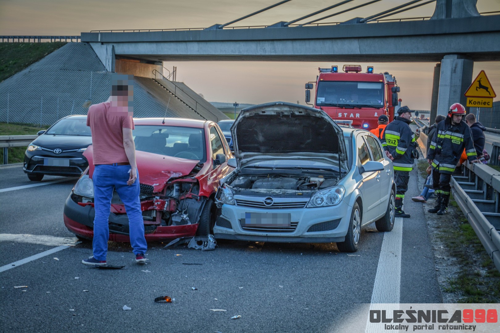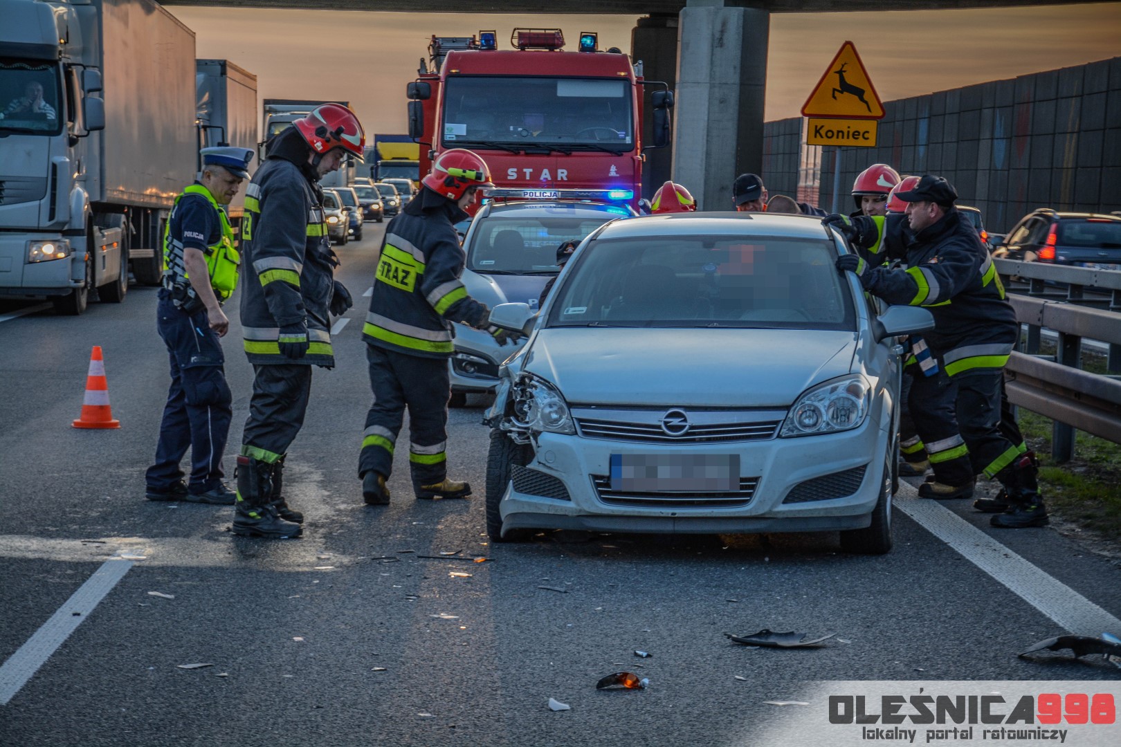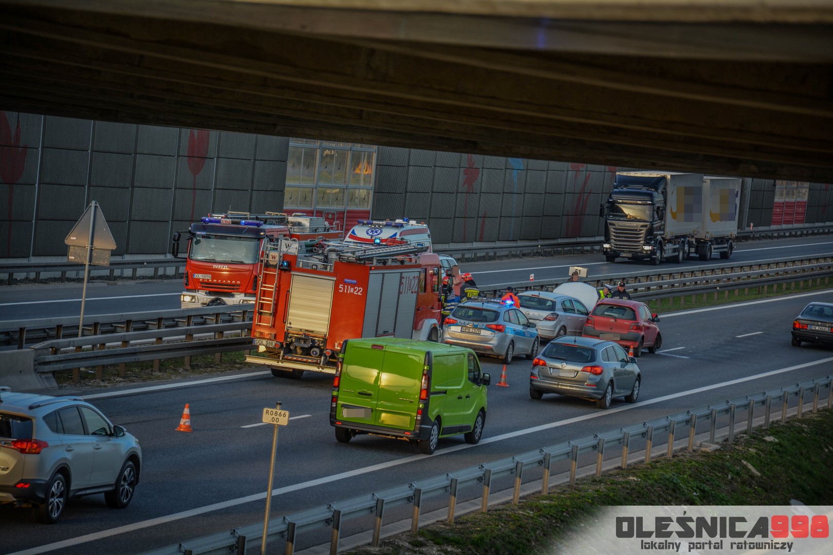 Około godziny 18:20, na trasie S8, tuż przed węzłem Oleśnica Zachód doszło do kolejnego dziś zdarzenia drogowego. Zderzyły się tam osobowa Toyota Yaris i Opel Astra. Na miejscu zjawiły się dwa zastępy Strażaków, podstawowa karetka Pogotowia Ratunkowego oraz patrol Policji.