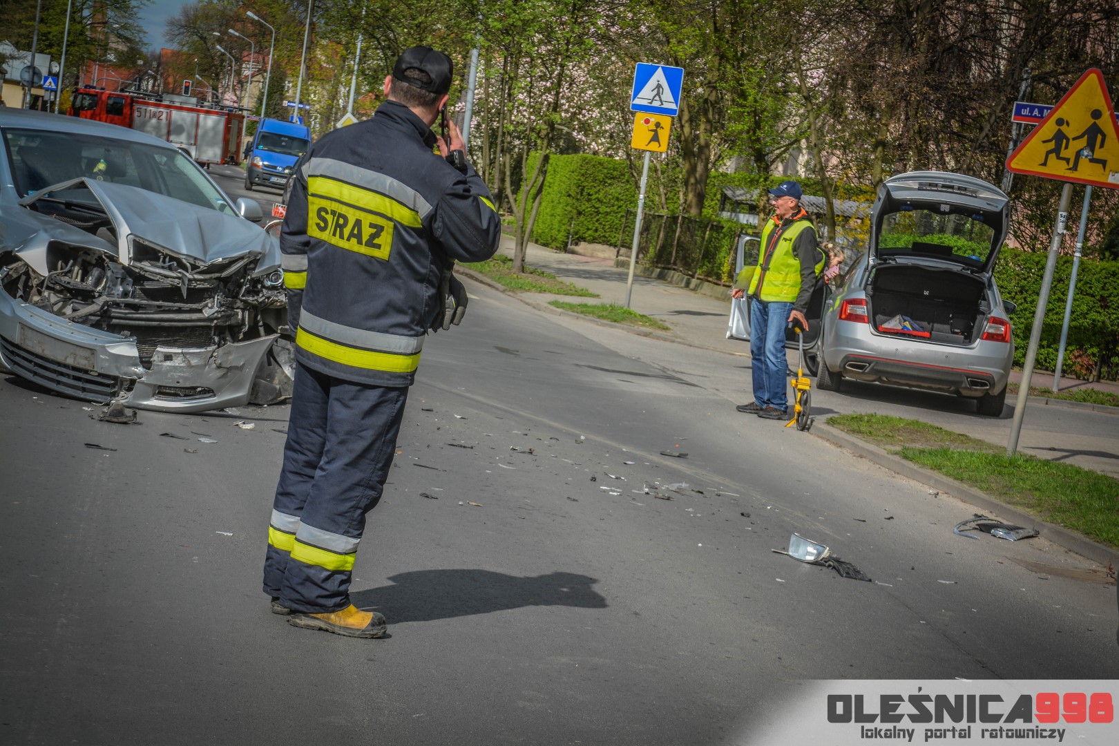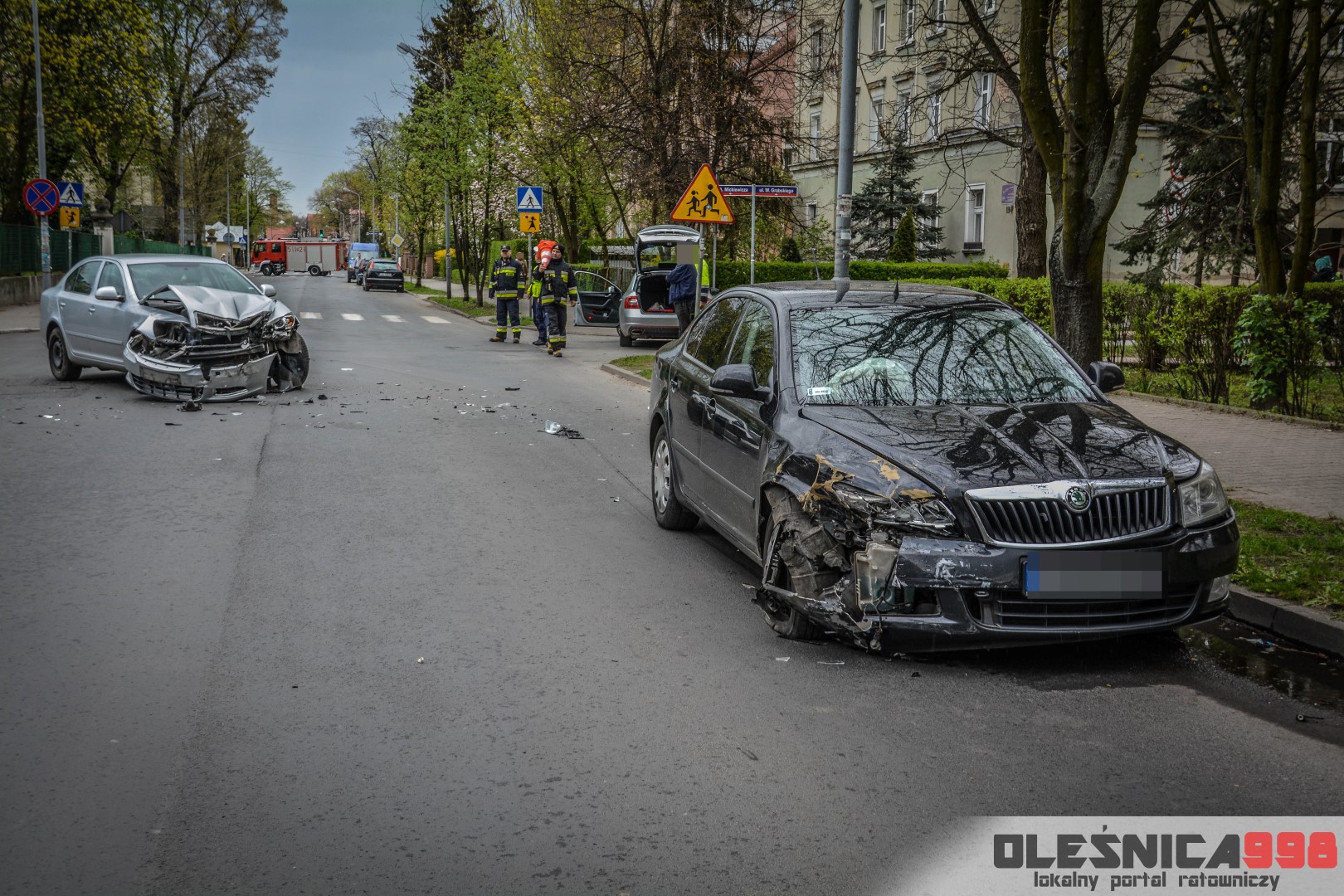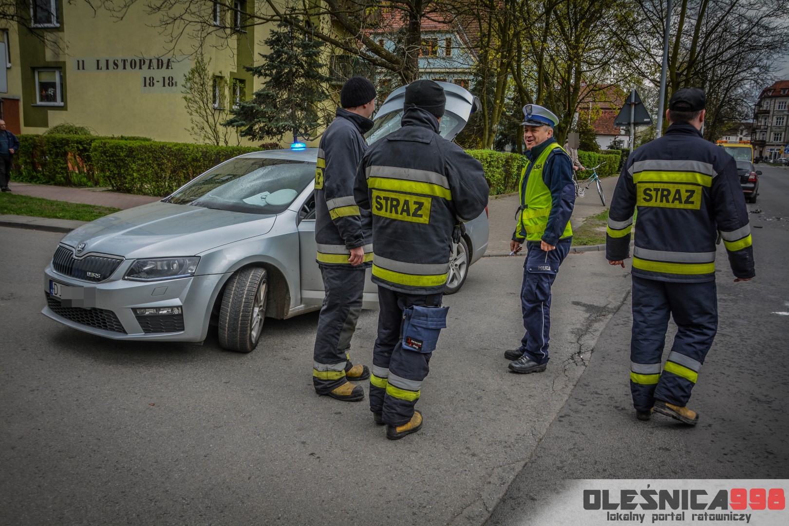 Około godziny 14:40, na skrzyżowaniu ulic 11 Listopada i Mickiewicza doszło do zdarzenia drogowego. Zderzyły się tam dwie osobowe Skody na oleśnickich tablicach rejestracyjnych. Na miejsce wypadku udały się dwa zastępy Strażaków, dwa zespoły Ratownictwa Medycznego a także dwa patrole Policji.