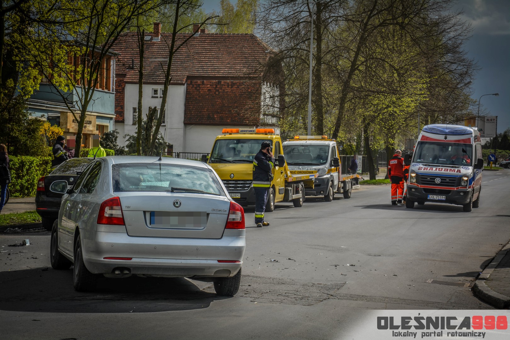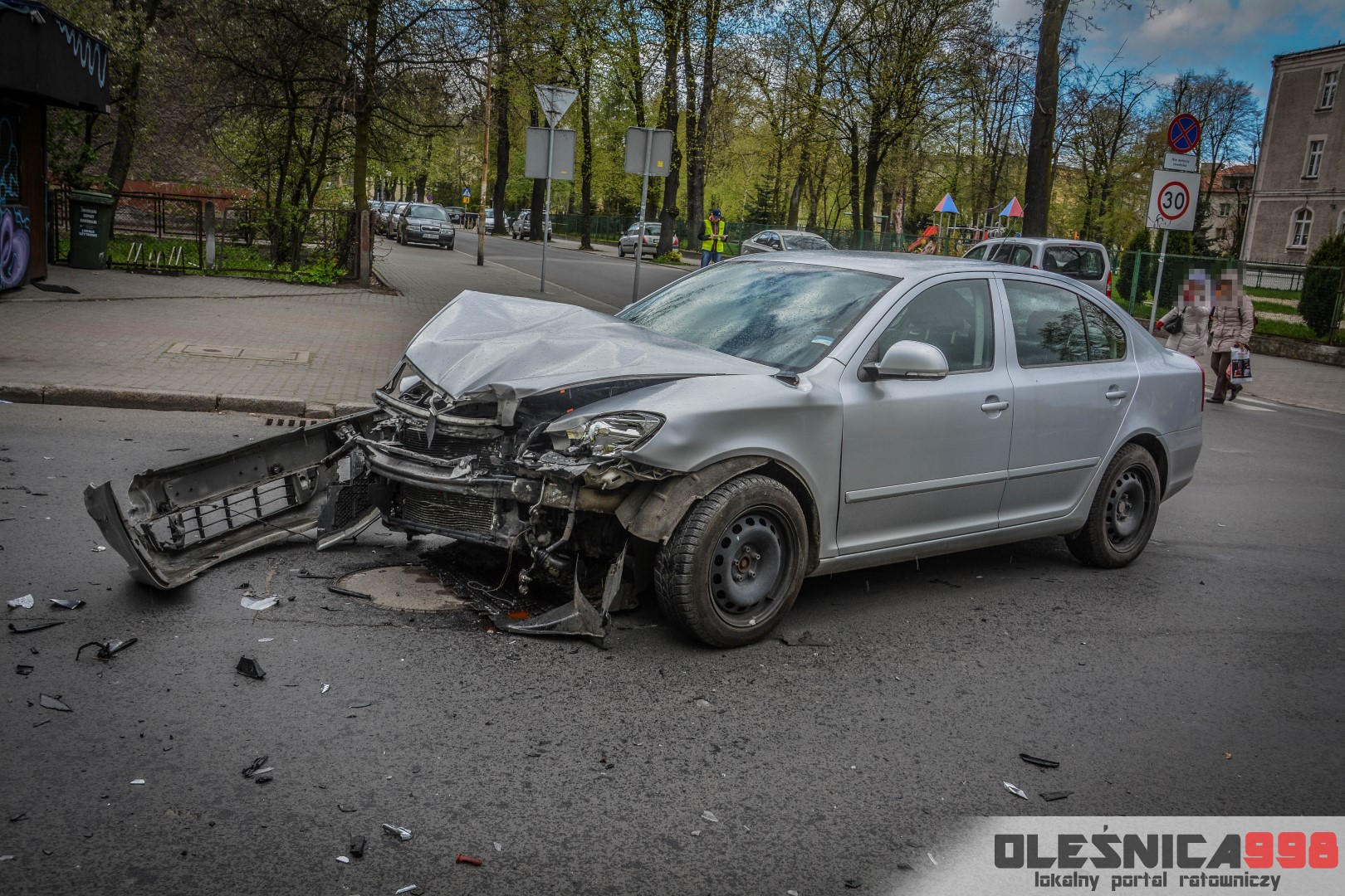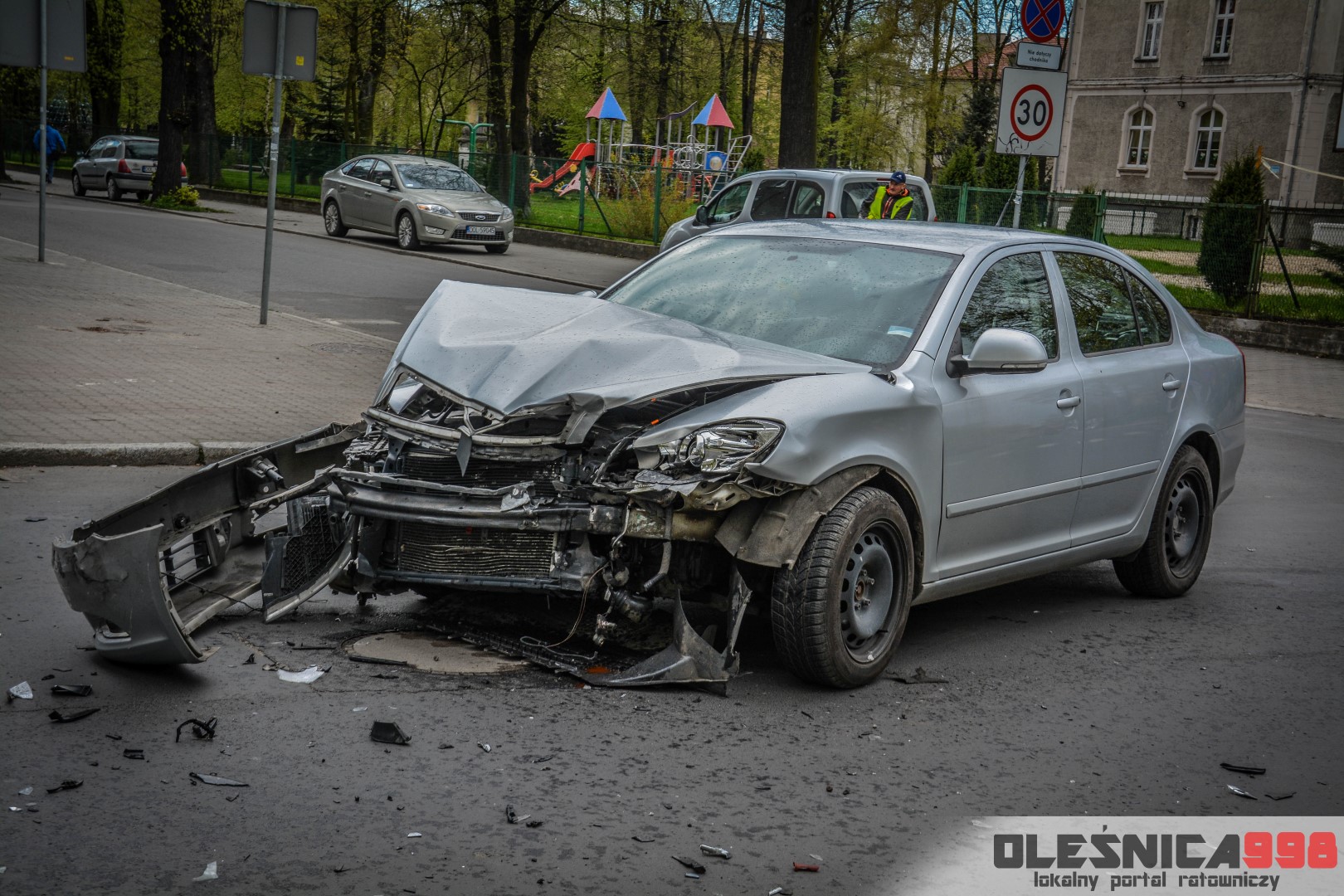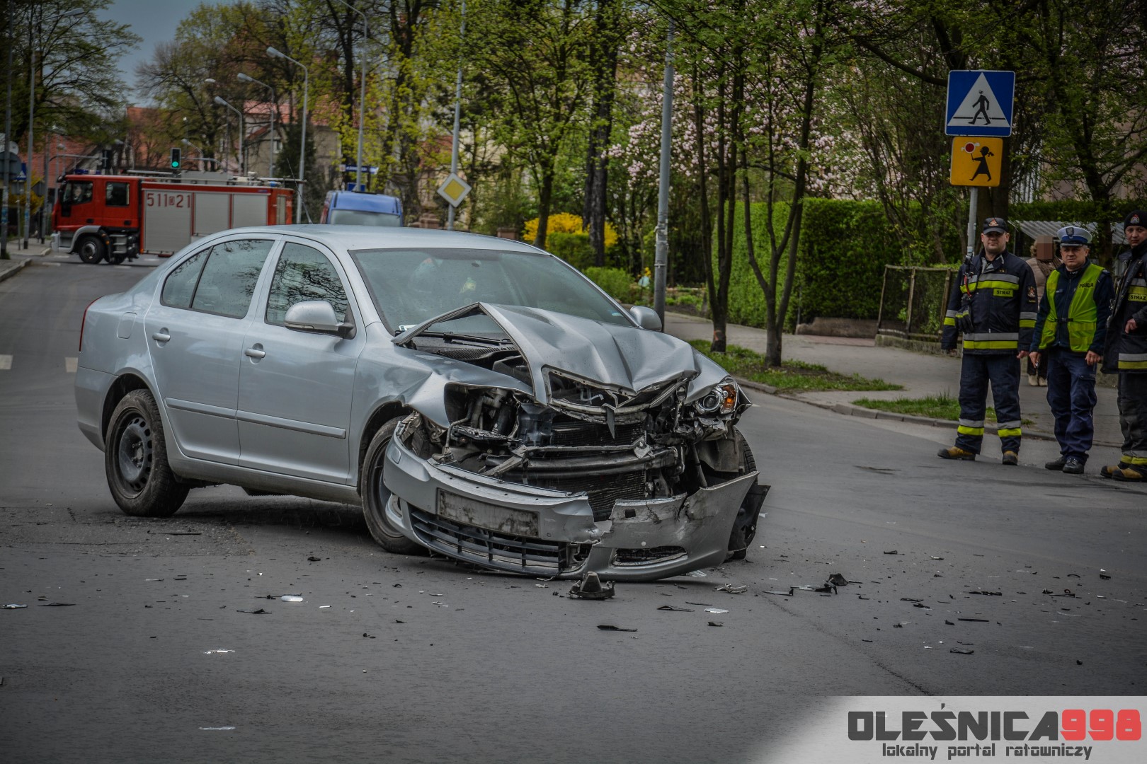 Około godziny 14:40, na skrzyżowaniu ulic 11 Listopada i Mickiewicza doszło do zdarzenia drogowego. Zderzyły się tam dwie osobowe Skody na oleśnickich tablicach rejestracyjnych. Na miejsce wypadku udały się dwa zastępy Strażaków, dwa zespoły Ratownictwa Medycznego a także dwa patrole Policji.