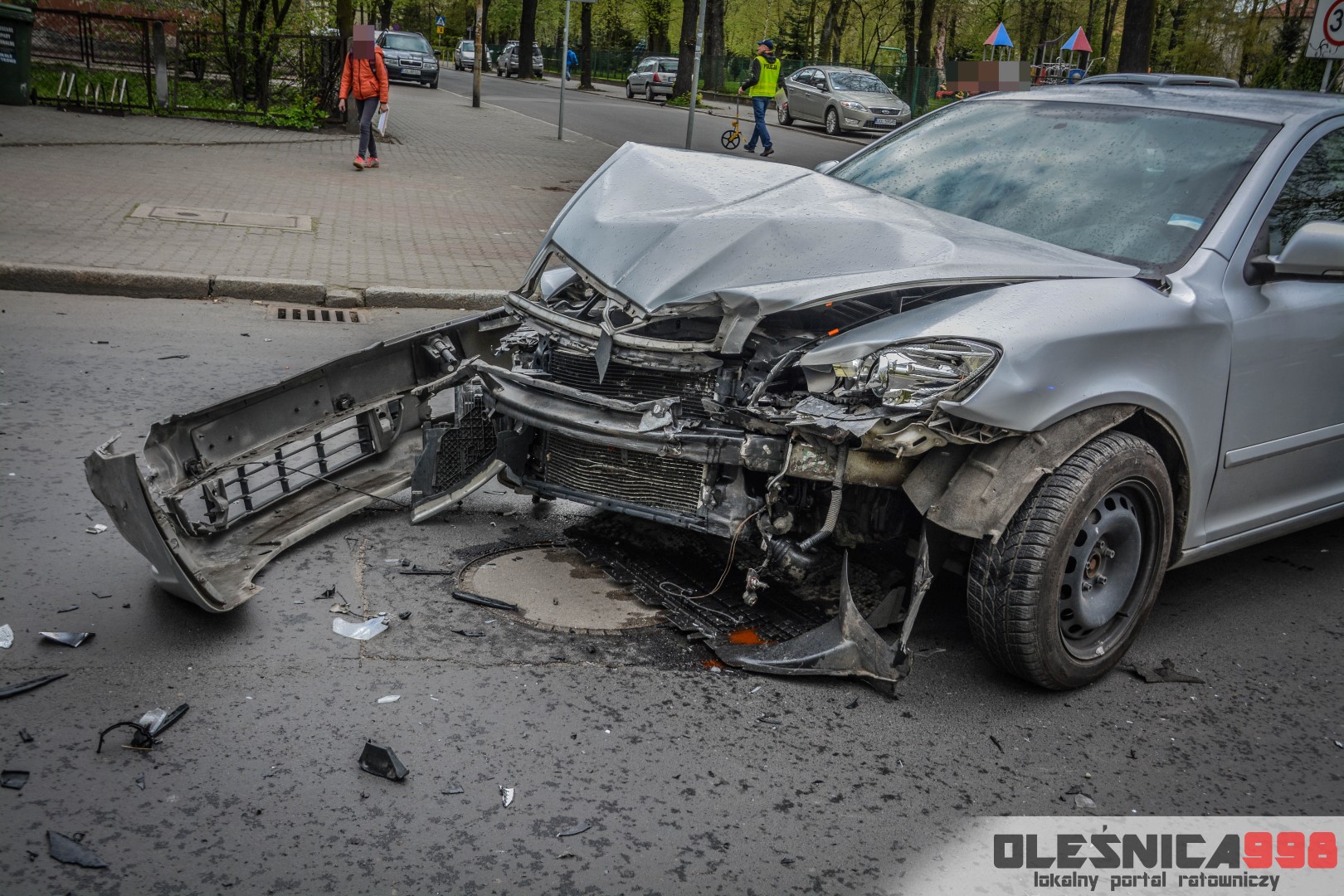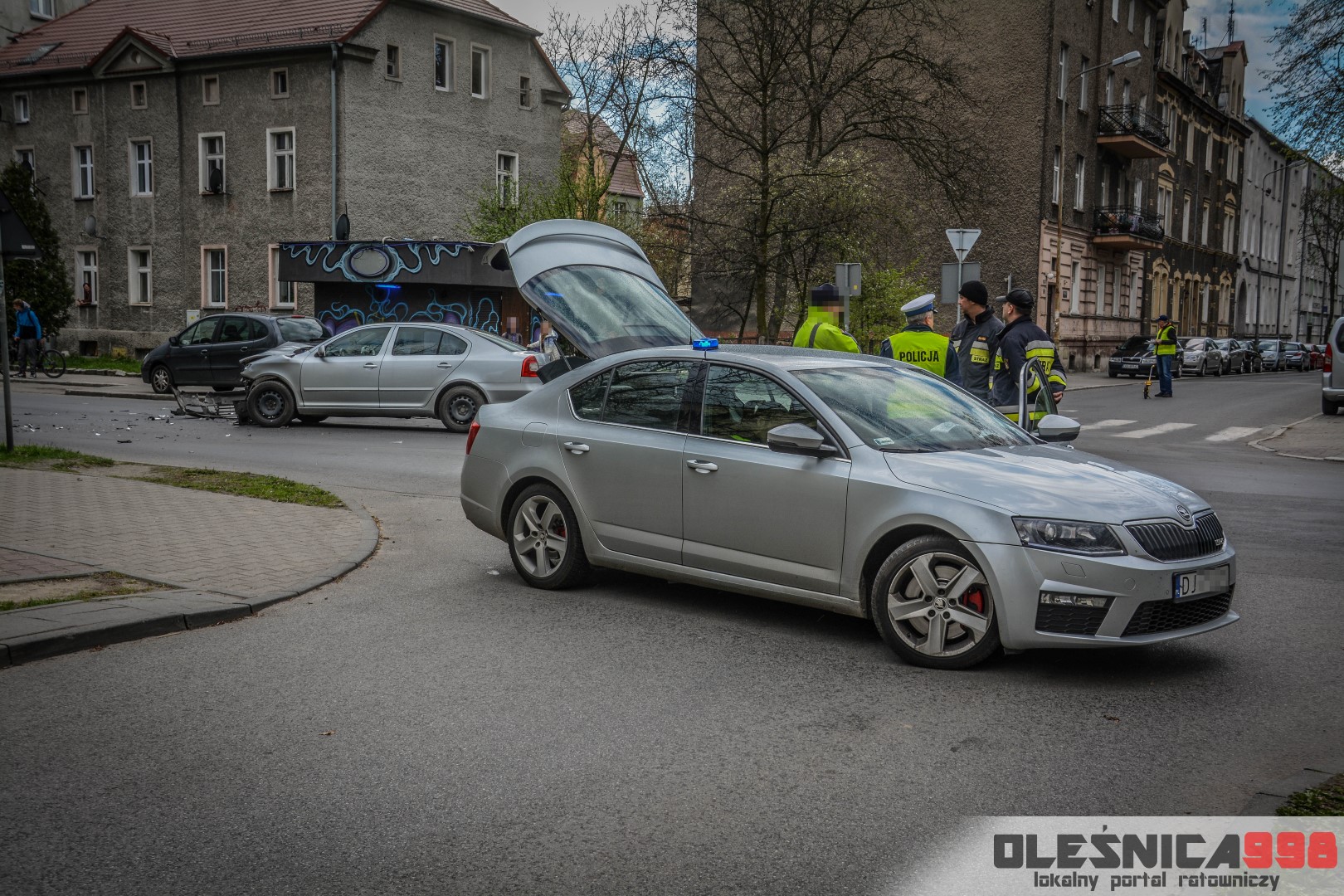 Na miejscu czynności wykonywali Policjanci Wydziału Ruchu Drogowego a także grupa dochodzeniowo – śledcza oleśnickiej Komendy. Ze wstępnych ustaleń Mundurowych wynika, że kierująca srebrną Skodą, wyjeżdżając z ulicy Mickiewicza, nie ustąpiła pierwszeństwa przejazdu kierującemu czarną Octavią mężczyźnie, doprowadzając do zderzenia obu pojazdów. Jak udało nam się nieoficjalnie dowiedzieć, kierowca ciemnego samochodu miał wyprzedzać na skrzyżowaniu inny samochód, popełniając tym samym wykroczenie, które mogło się przyczynić do zdarzenia.