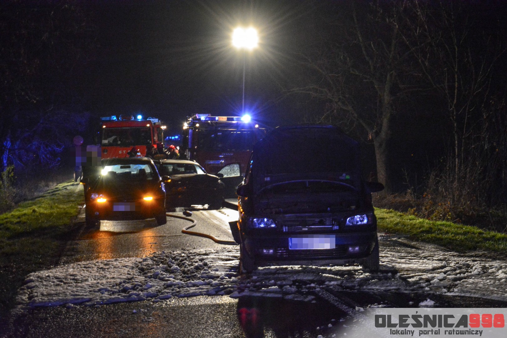 Zderzenie trzech osobówek na trasie Oleśnica – Bierutów. Droga jest całkowicie zablokowana