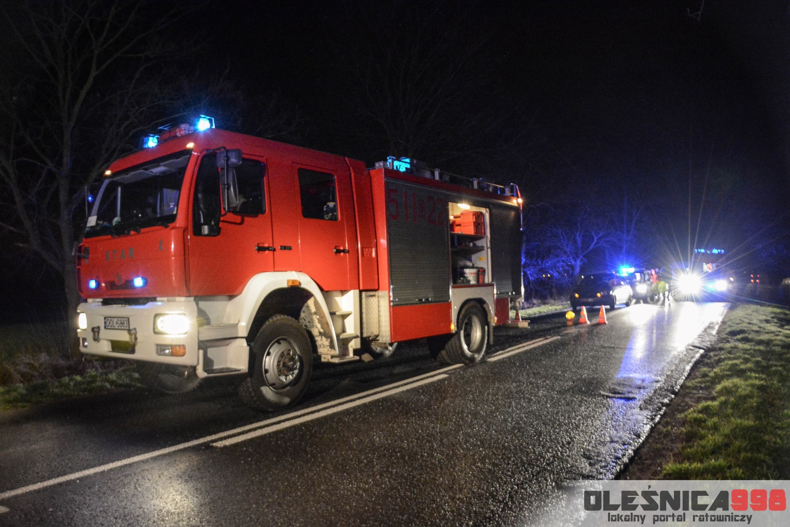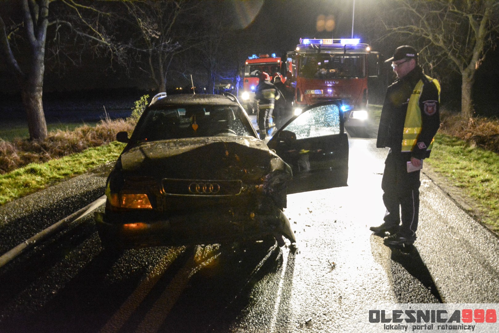 Dzisiejszego wieczoru, około godziny 22:15, do Stanowiska Kierowania KP PSP w Oleśnicy wpłynęło zgłoszenie o wypadku drogowym na ulicy Krzywoustego, pomiędzy miastem a miejscowością Świerzna. Na miejsce zadysponowane zostały zastępy JRG Oleśnica. Do zdarzenia udały się również patrole Policji oraz zespół Ratownictwa Medycznego.