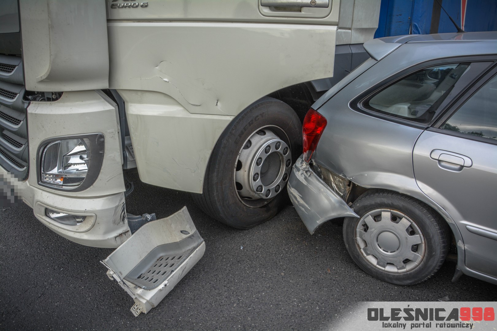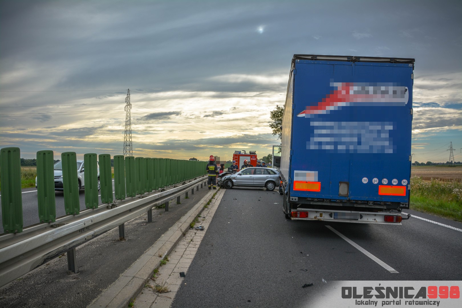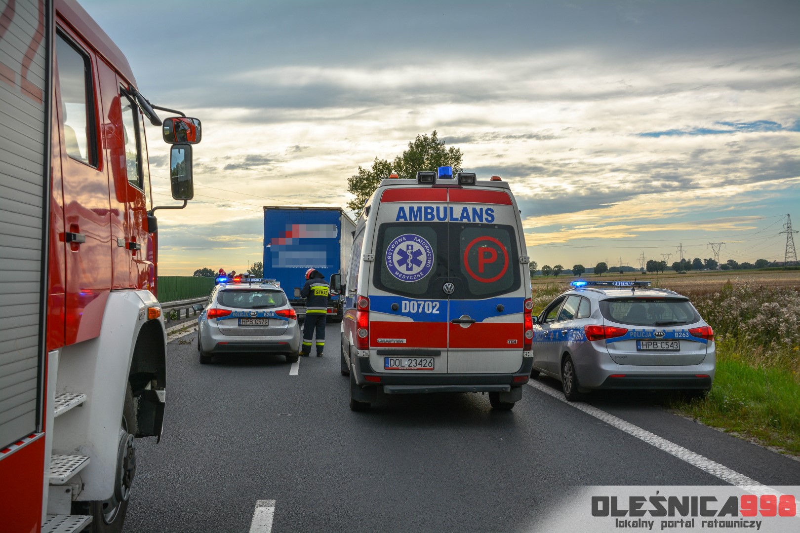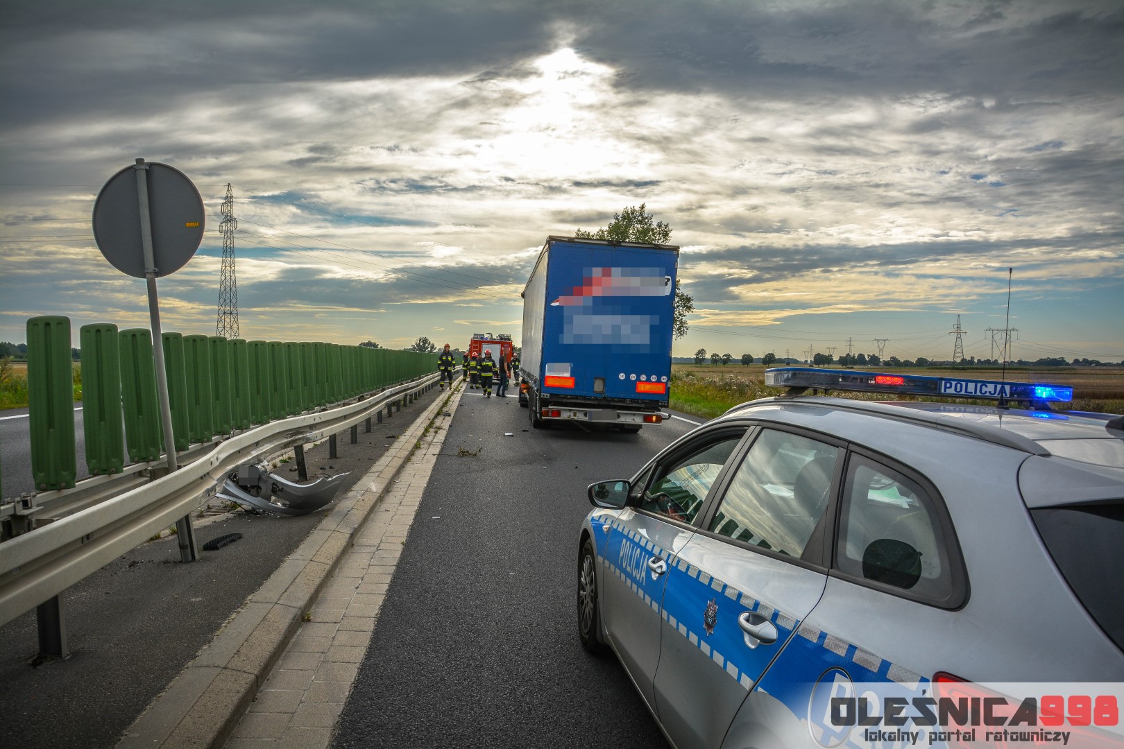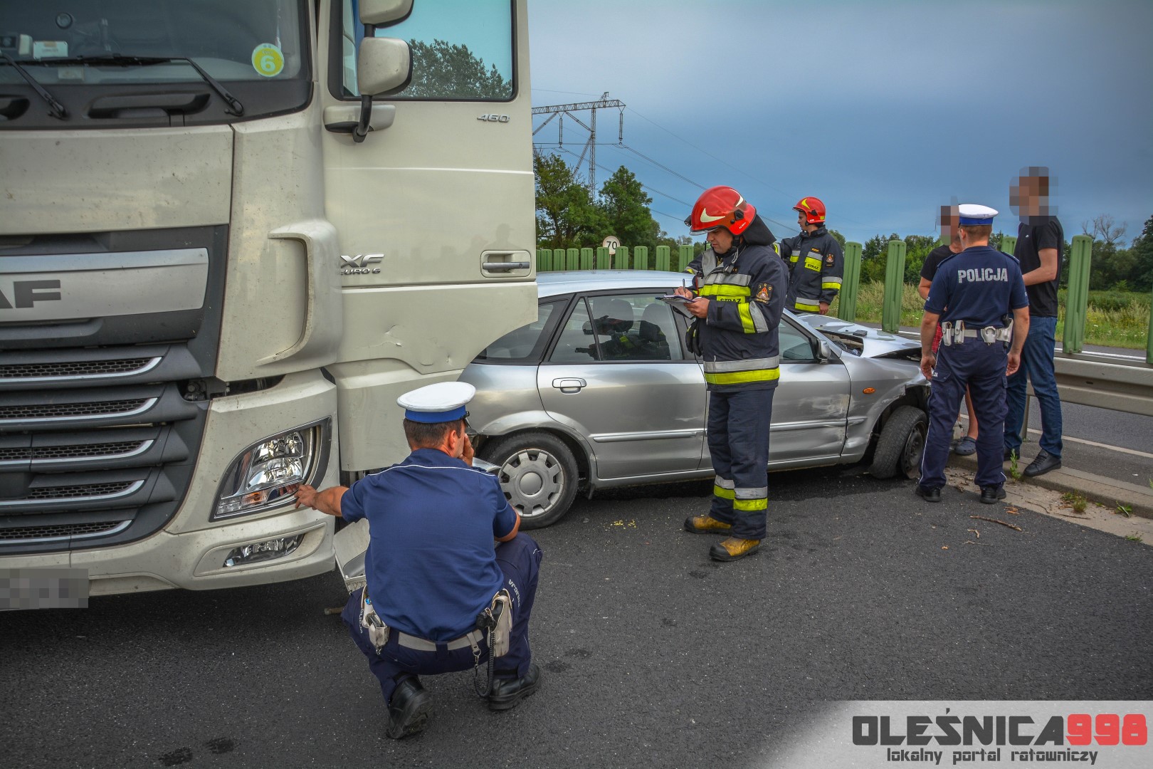 Jak ustalili pracujący na miejscu Policjanci Wydziału Ruchu Drogowego oleśnickiej Komendy, kierujący ciężarówką obywatel Rumunii, podczas zmiany pasa z lewego na prawy, nie zauważył jadącej już nim kierującej Mazdą, w wyniku czego zahaczył o tył osobówki, która następnie obróciła się, znalazła przed maską zestawu i po chwili uderzyła w bariery energochłonne oddzielające pasy ruchu.