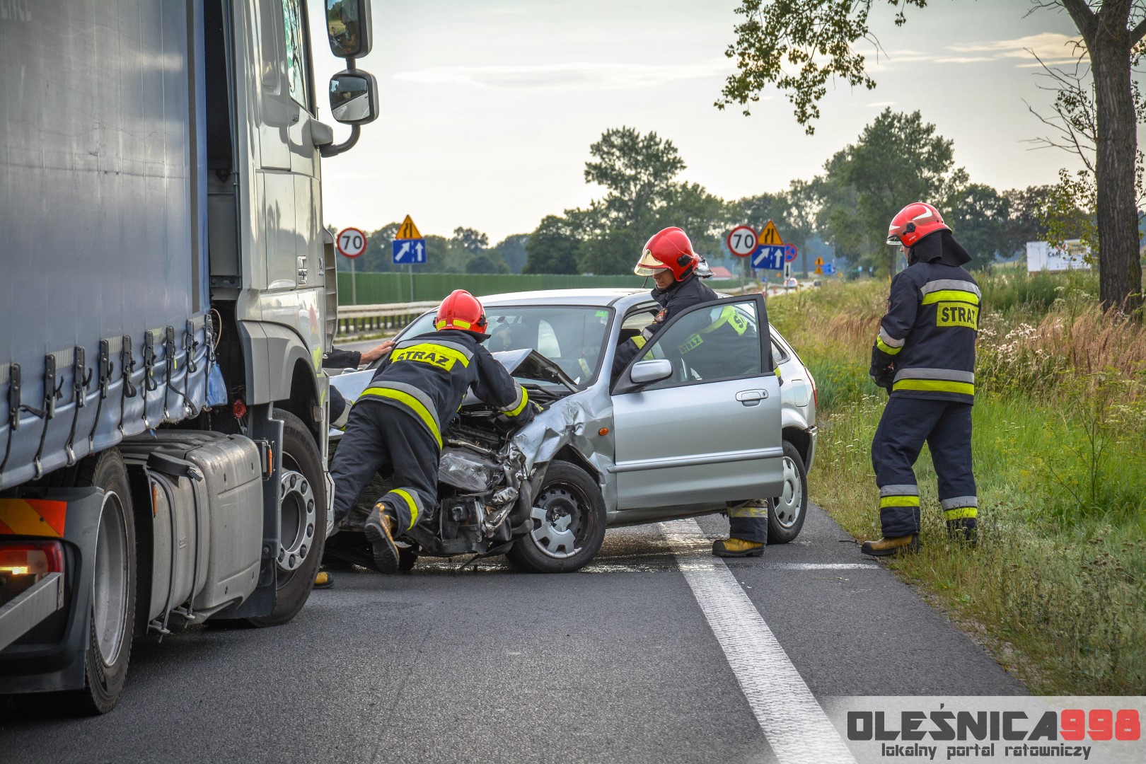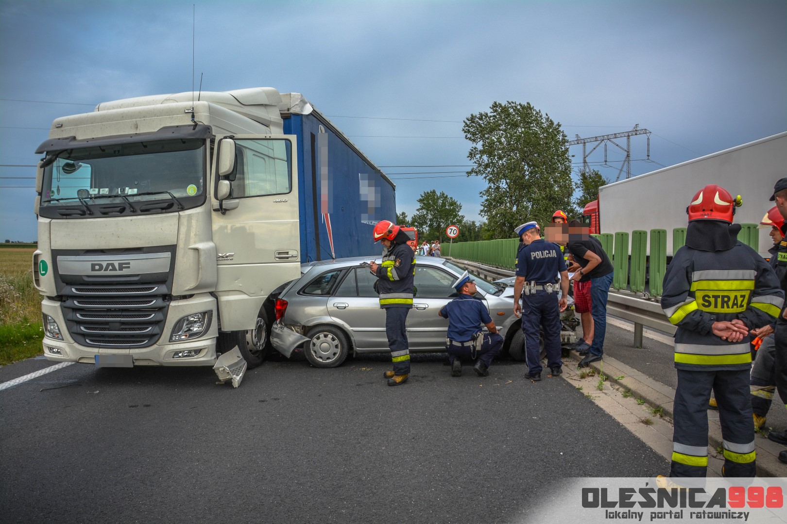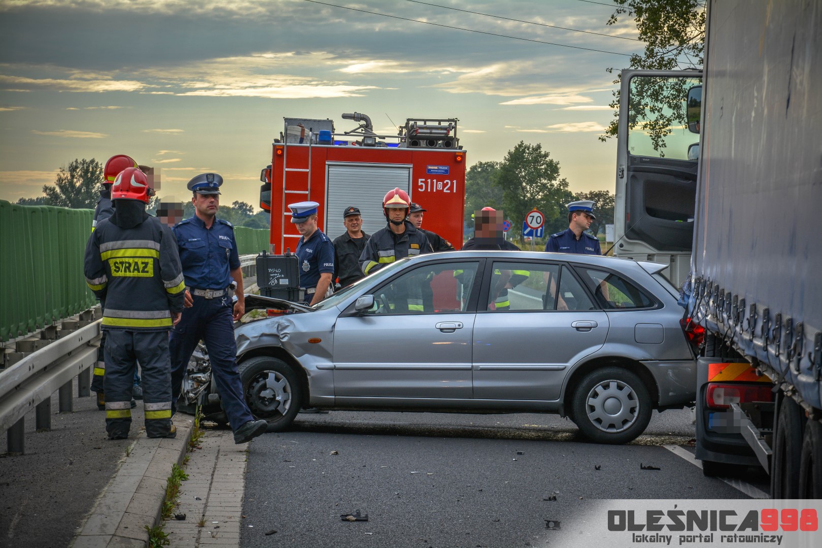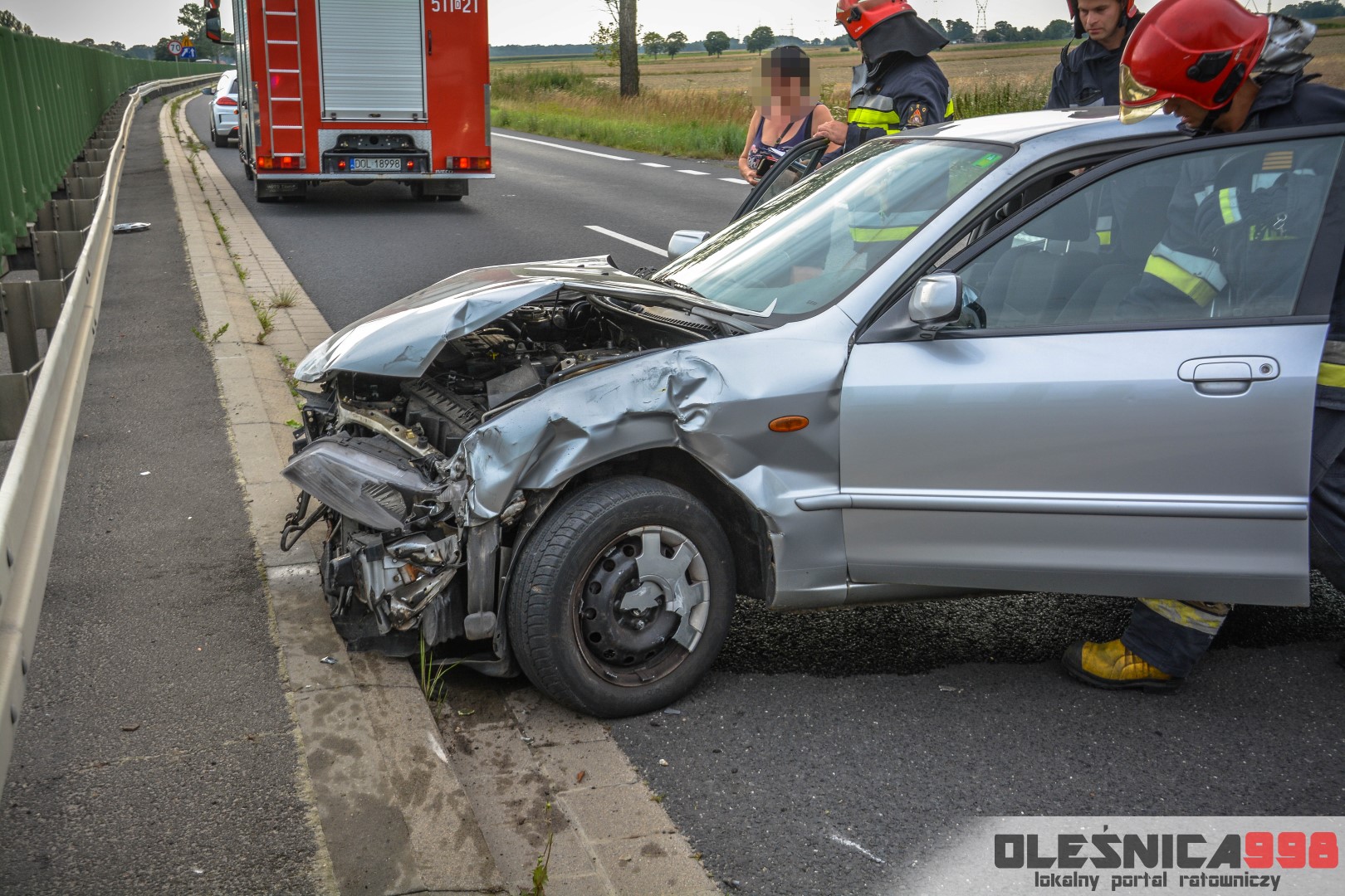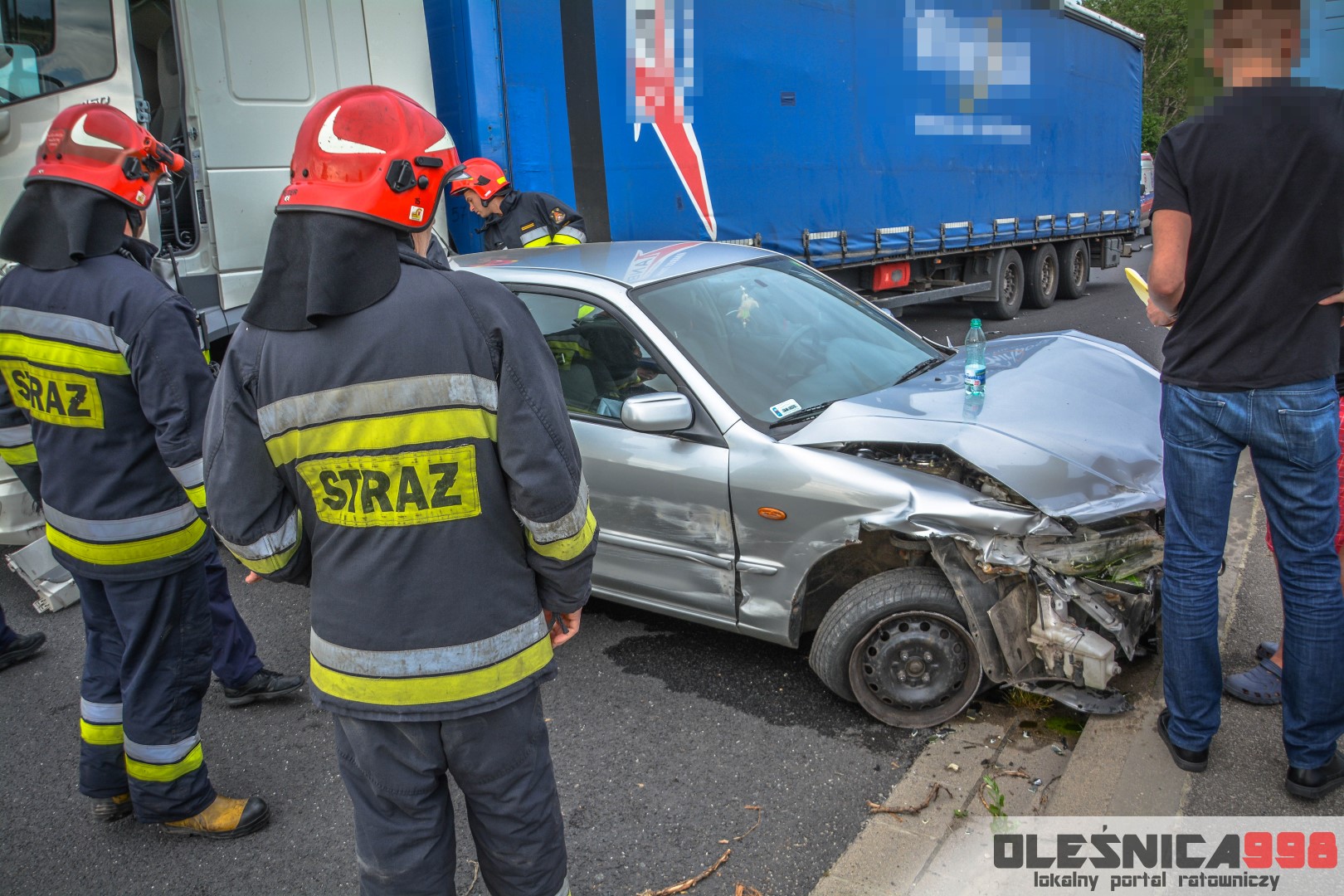 Jak ustalili pracujący na miejscu Policjanci Wydziału Ruchu Drogowego oleśnickiej Komendy, kierujący ciężarówką obywatel Rumunii, podczas zmiany pasa z lewego na prawy, nie zauważył jadącej już nim kierującej Mazdą, w wyniku czego zahaczył o tył osobówki, która następnie obróciła się, znalazła przed maską zestawu i po chwili uderzyła w bariery energochłonne oddzielające pasy ruchu.