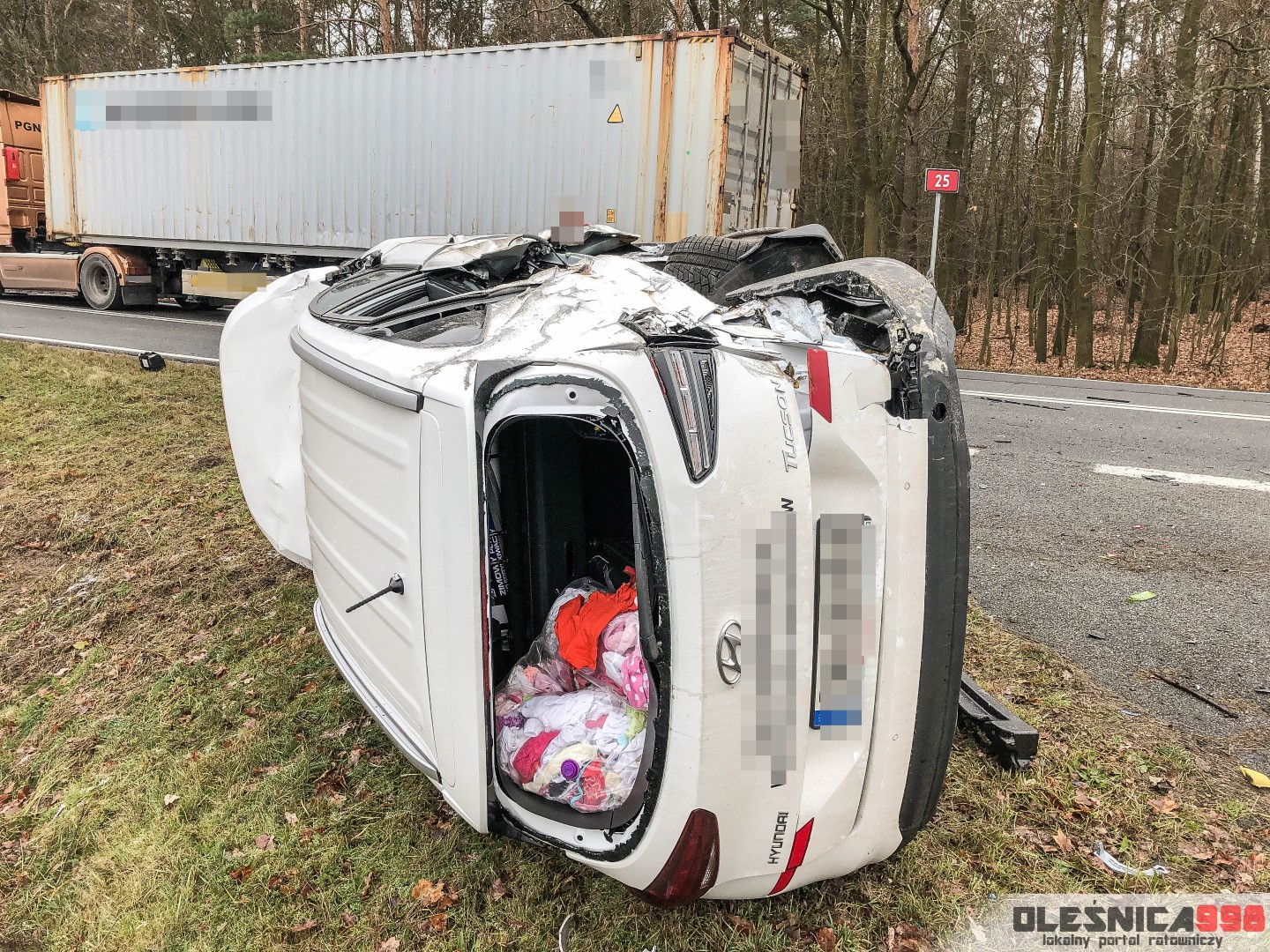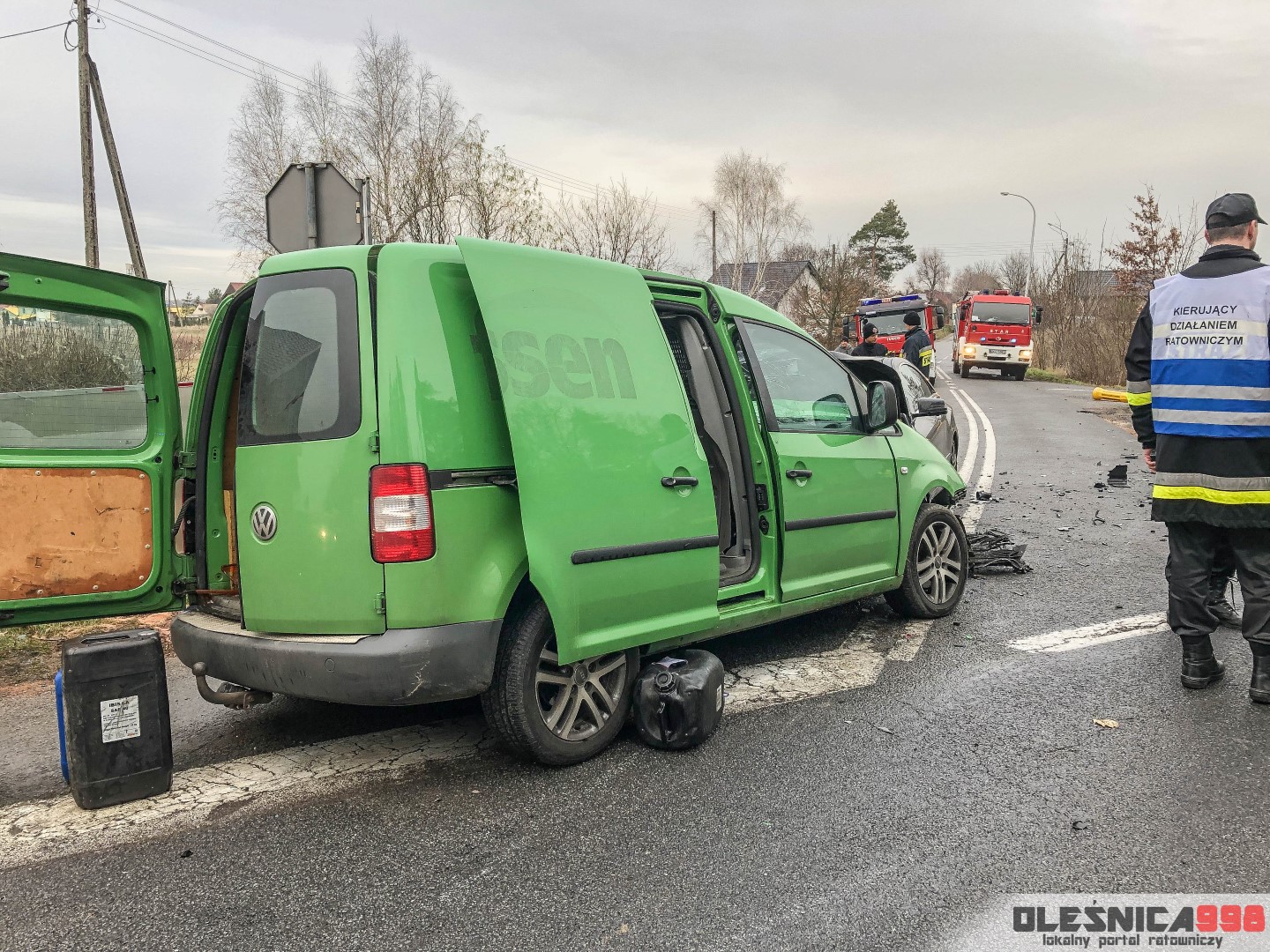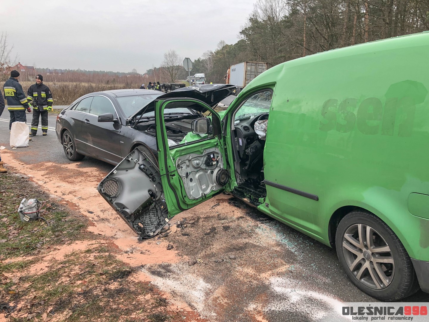 Jak wynika z naszych informacji, do zdarzenia miało dojść podczas gdy Volkswagen Caddy, wyjeżdżał od Sokołowic w kierunku Oleśnicy. To wtedy, kierujący Hyundaiem Tucsonem miał wyprzedzać, w miejscu niedozwolonym, poruszający się w kierunku Międzyborza pojazd ciężarowy. Hyundai, próbując się ratować od kolizji z VW odbił się od ciężarówki a następnie, mimo wszystko, zderzył się z Volkswagenem, który następnie siłą uderzenia obrócił się i uszkodził stojącego za nim Mercedesa. Po zderzeniu z zielonym „dostawczakiem”, Hyundai wjechał na trawiastą wysepkę a następnie przewrócił się na bok.